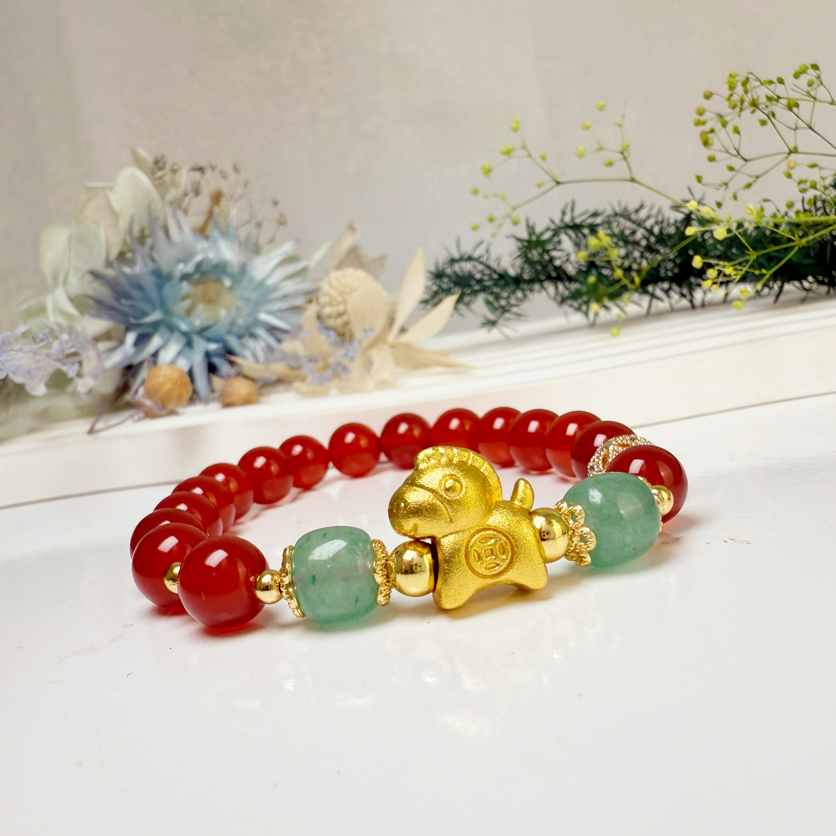 健康/平安-《馬上有錢紅玉髓手鍊》