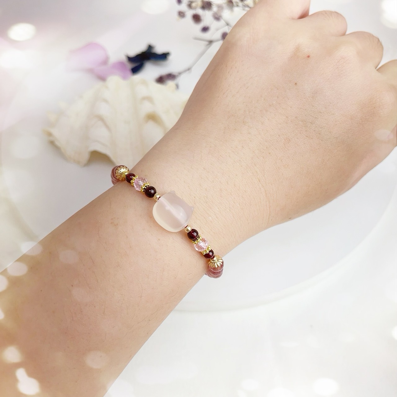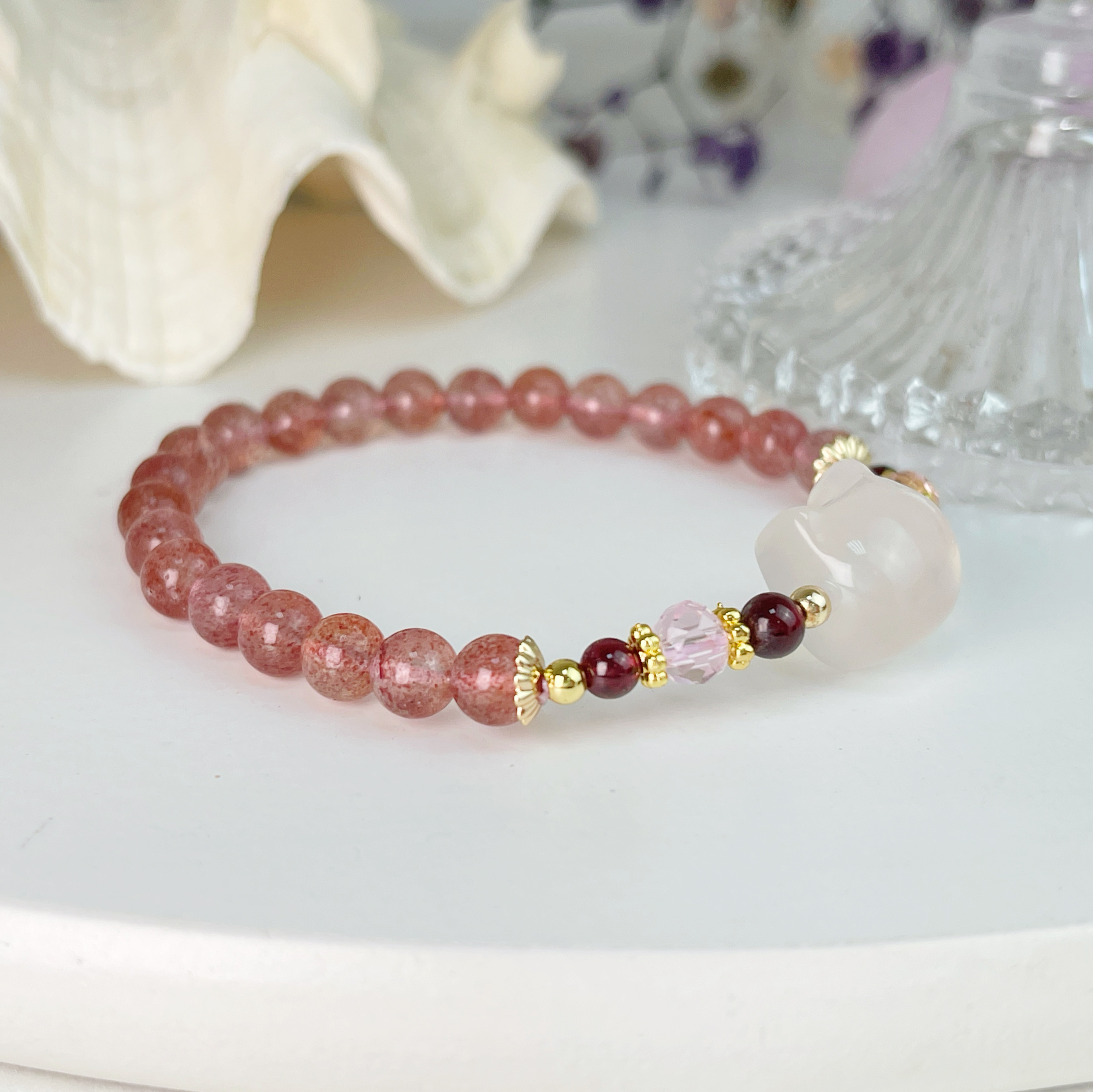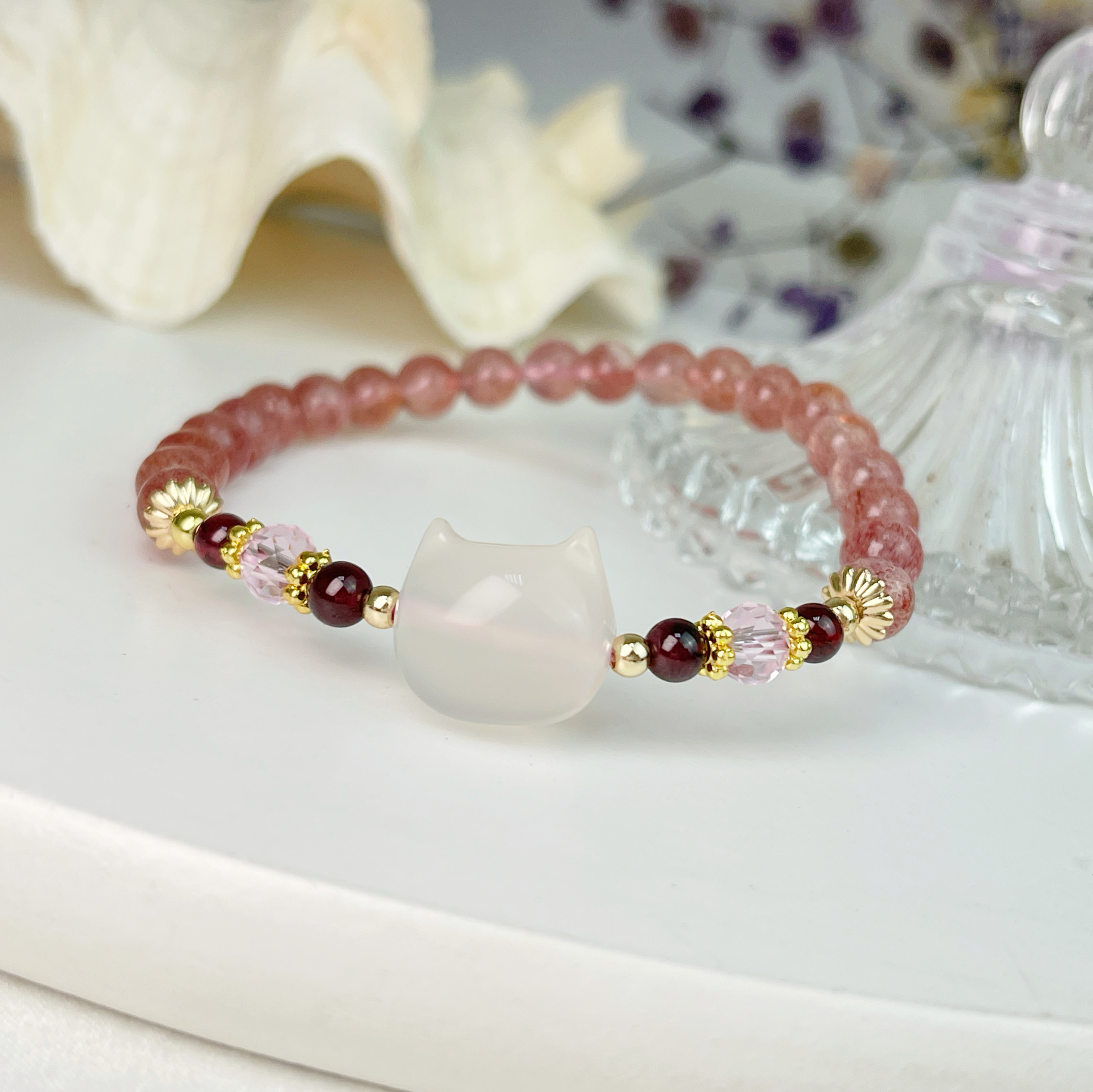 #水晶能量 #開運手鍊 #招財 #招貴人 #旺運勢 #玉髓貓咪 #草莓晶 #詩鈺瑄水晶