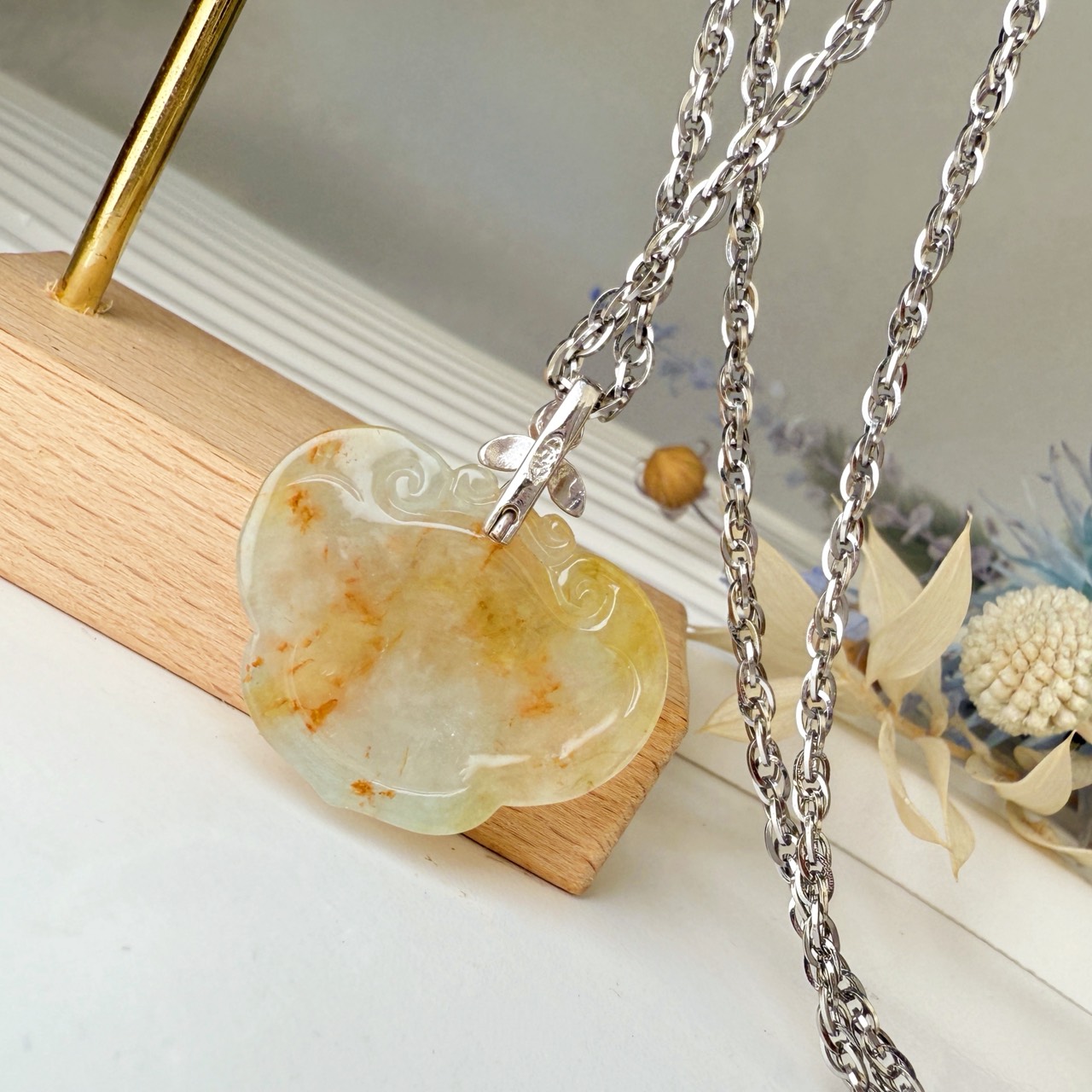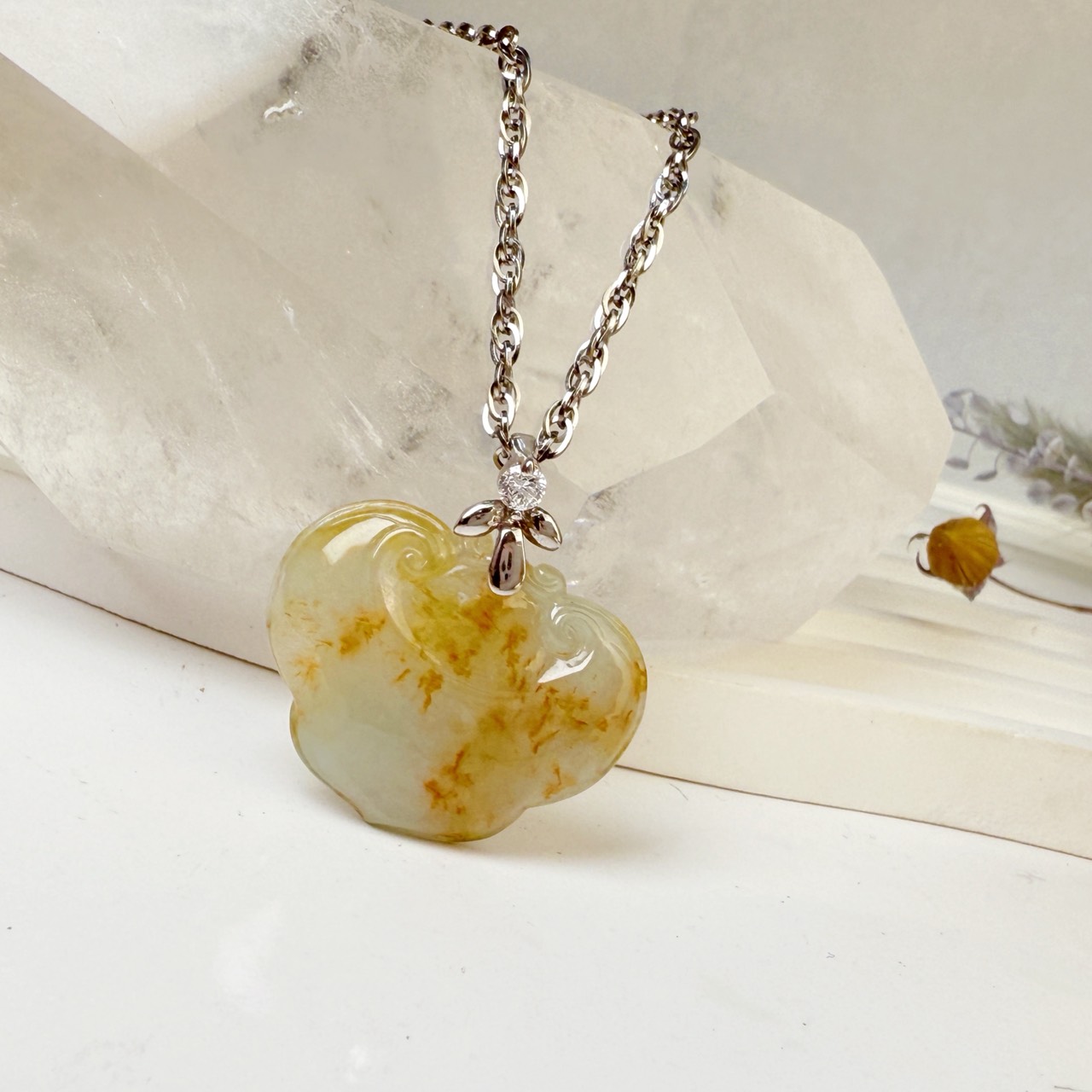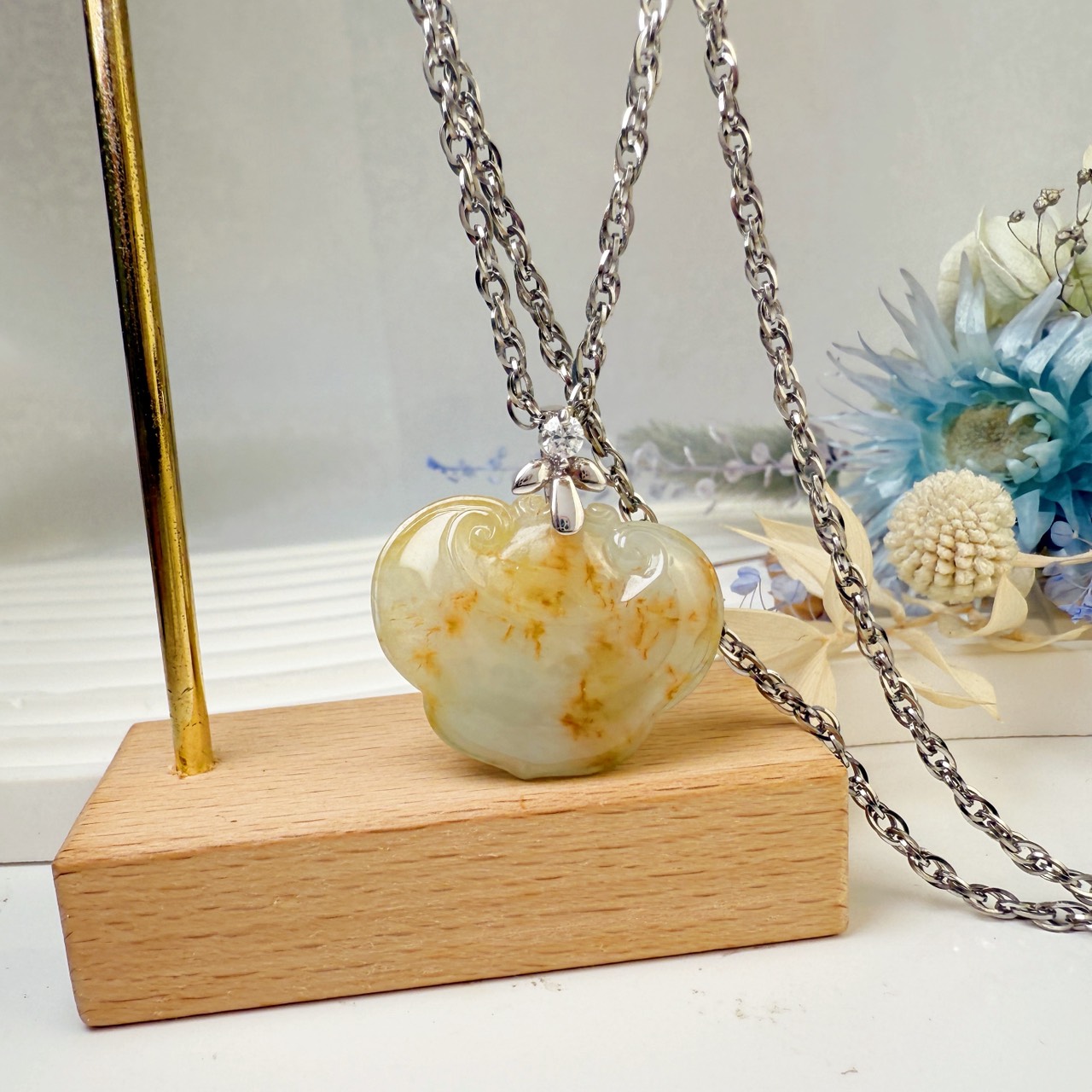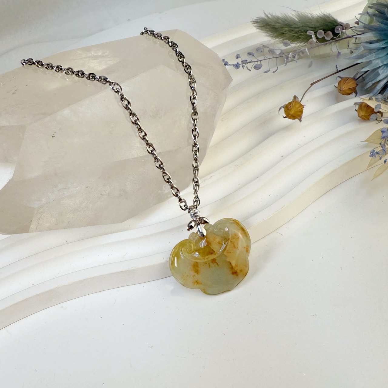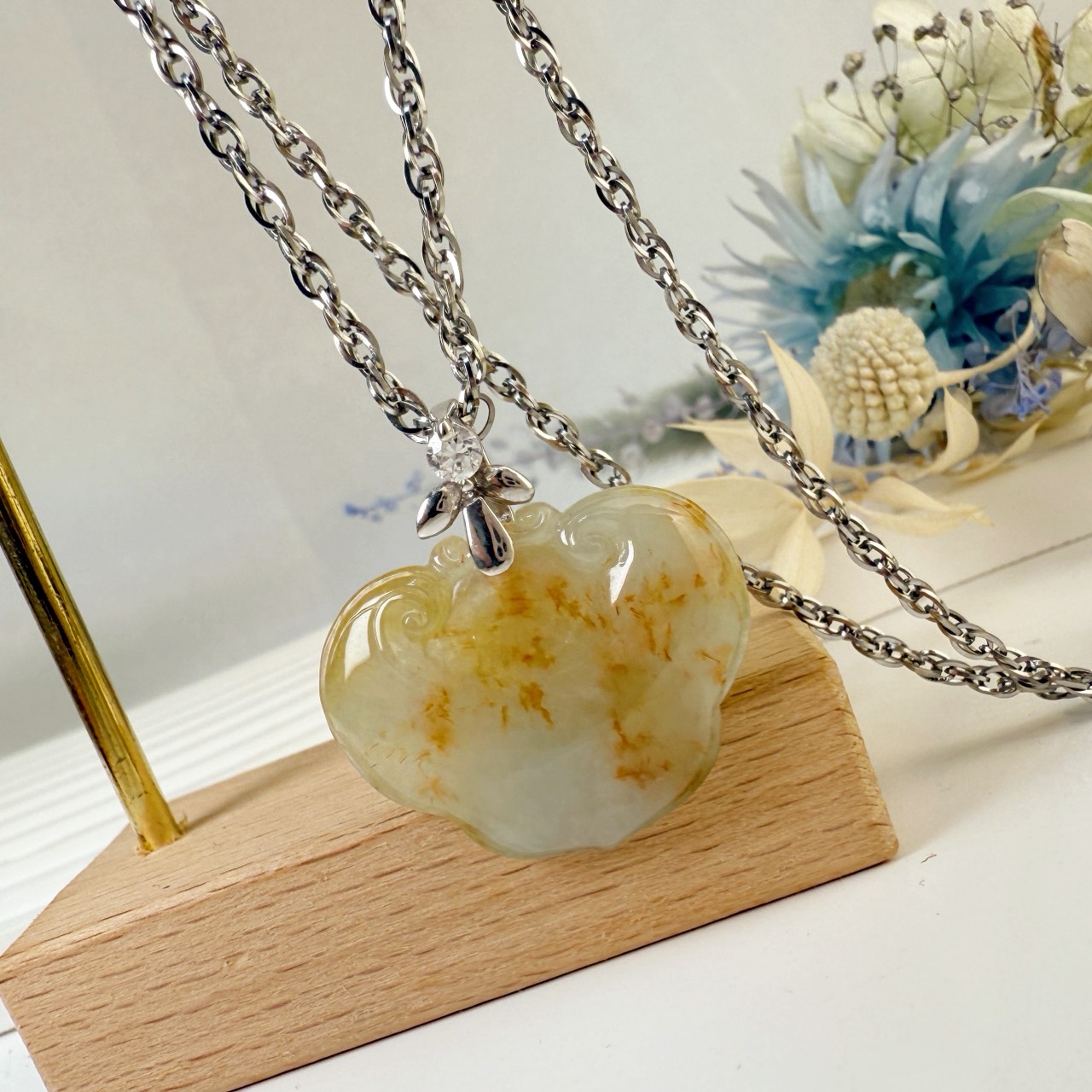 平安吉祥/心靈安定-《緬甸玉黃翡飄花如意項鍊》