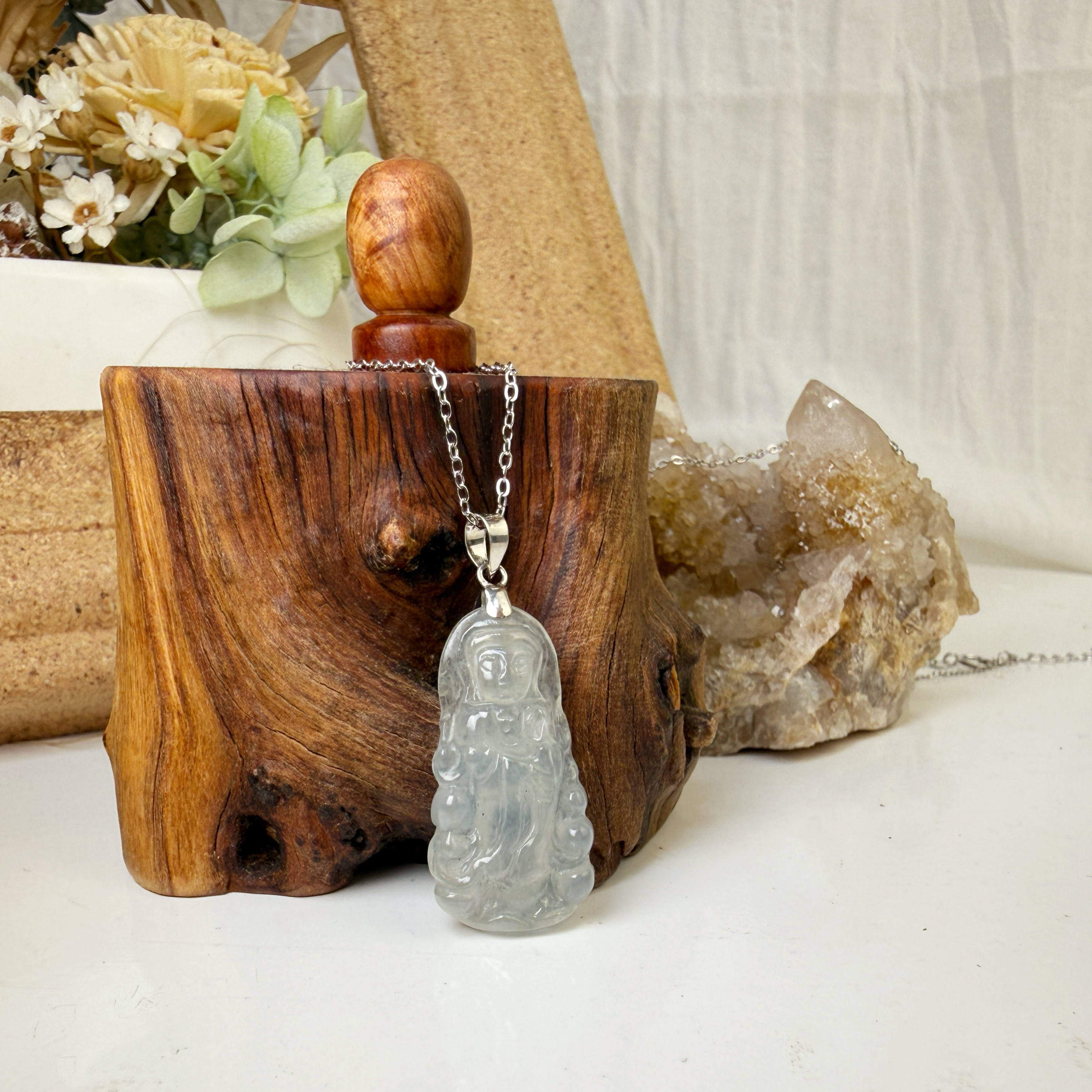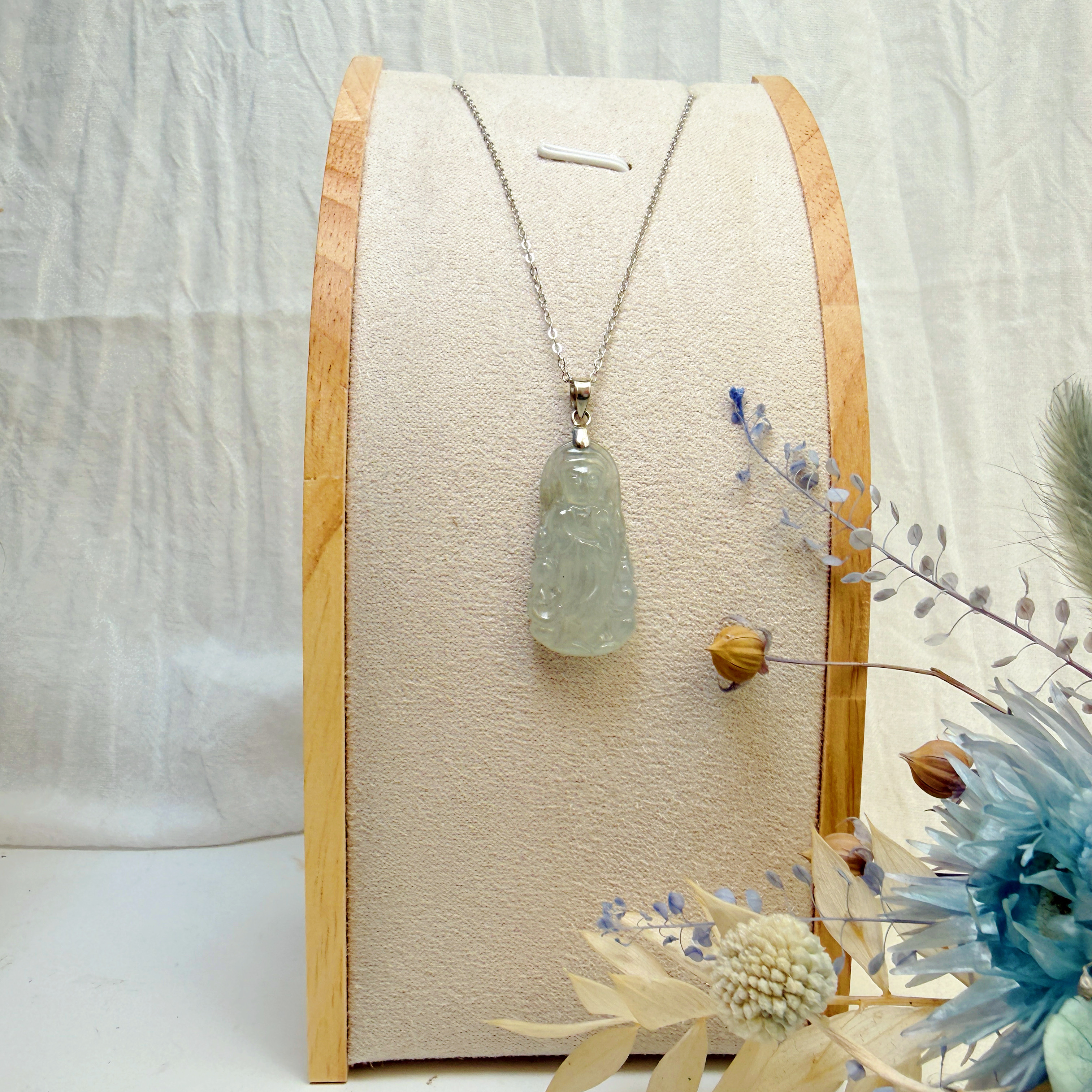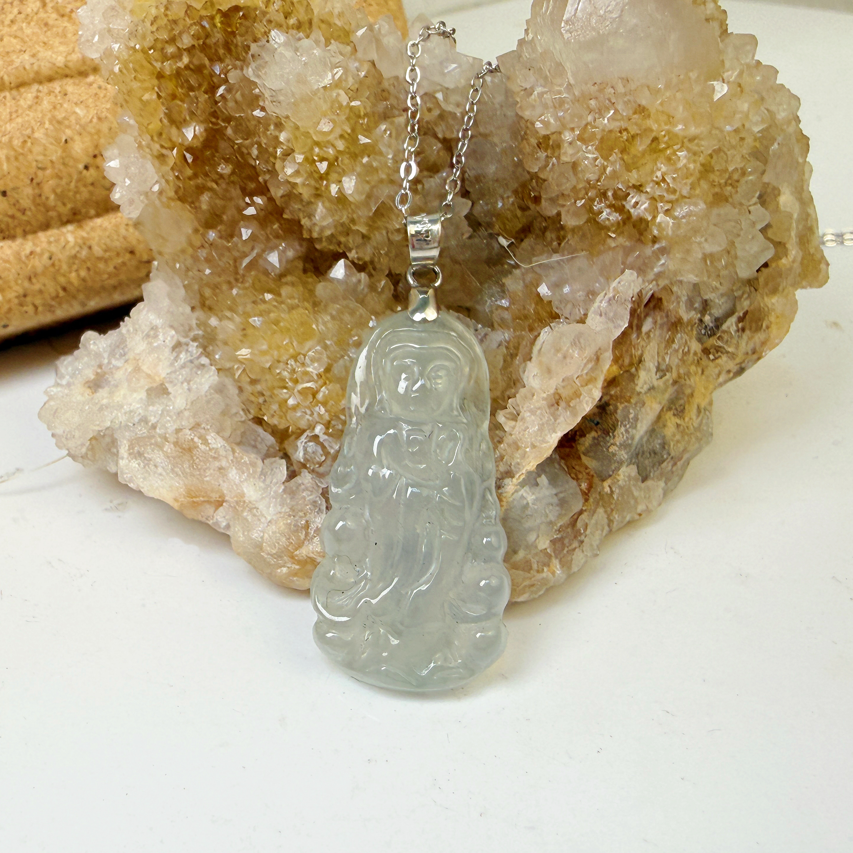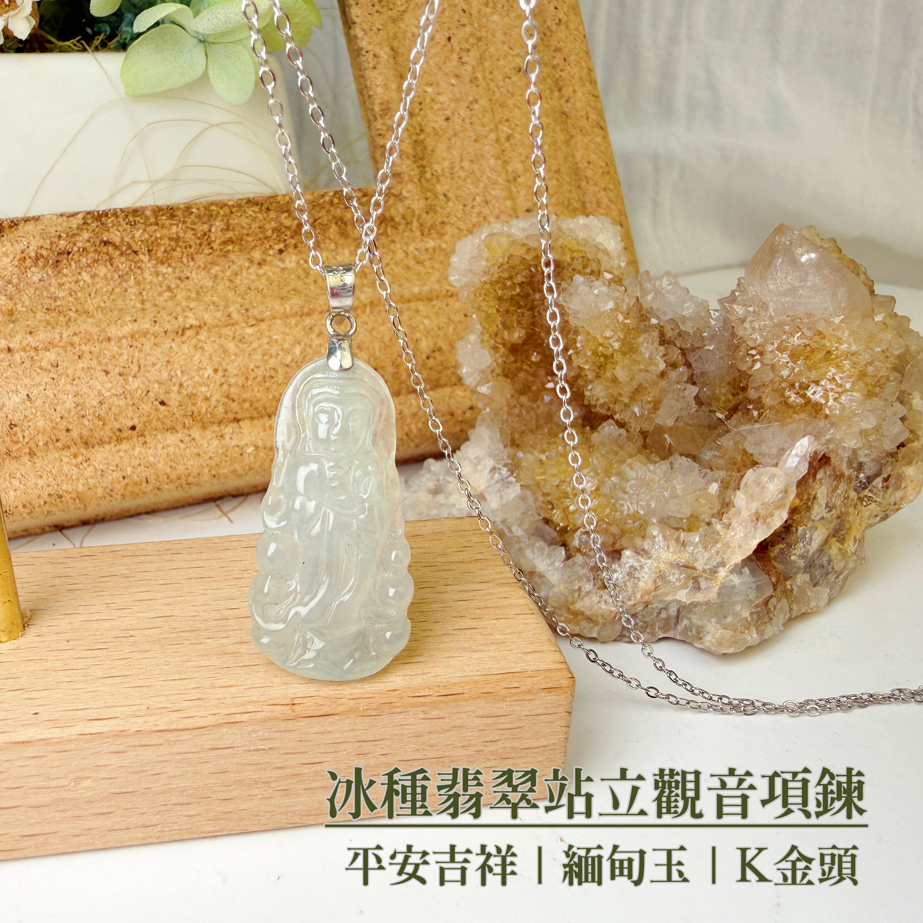 平安/吉祥/靜心-《冰種翡翠站立觀音項鍊》
