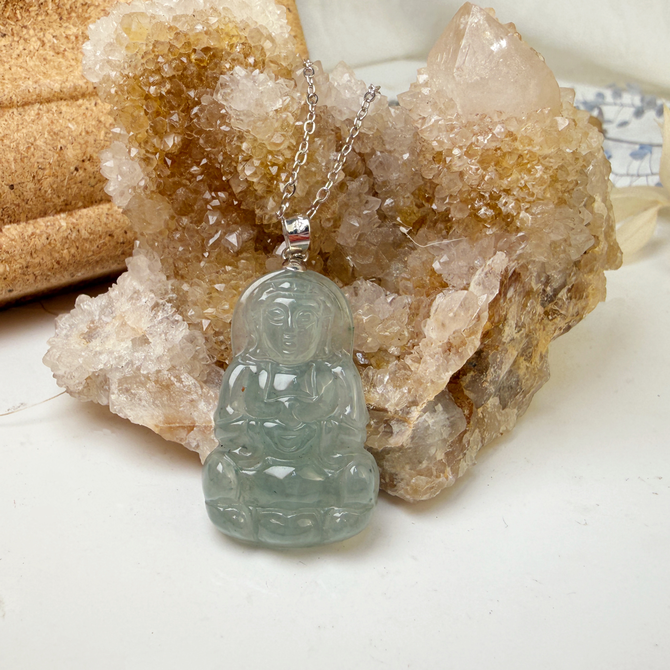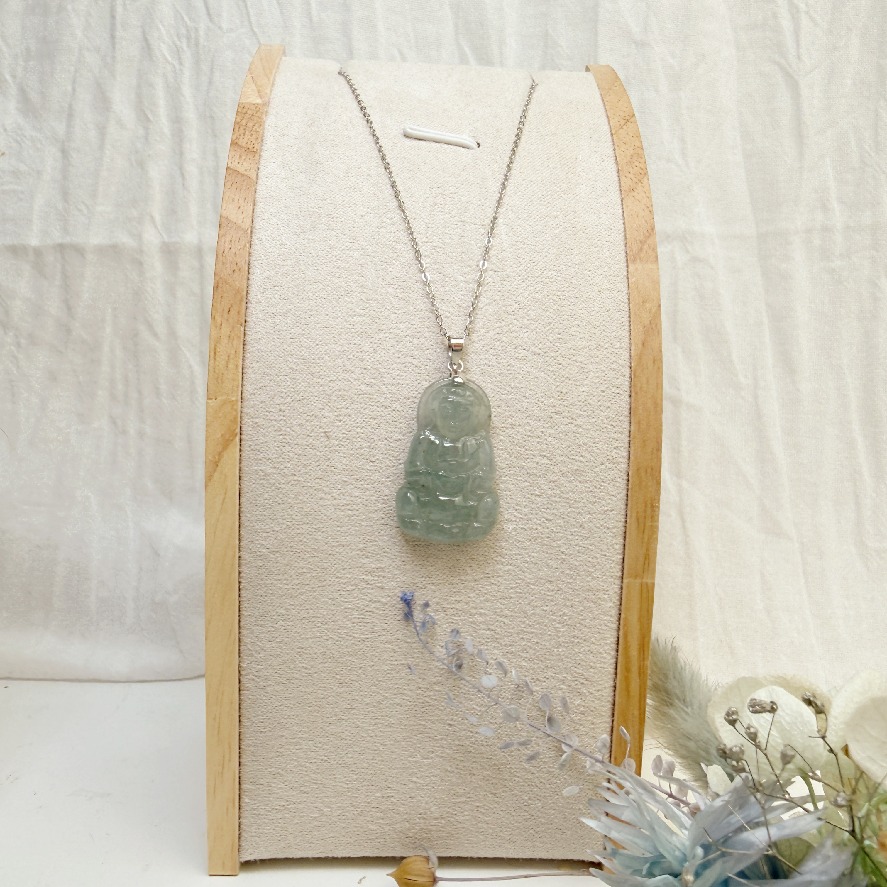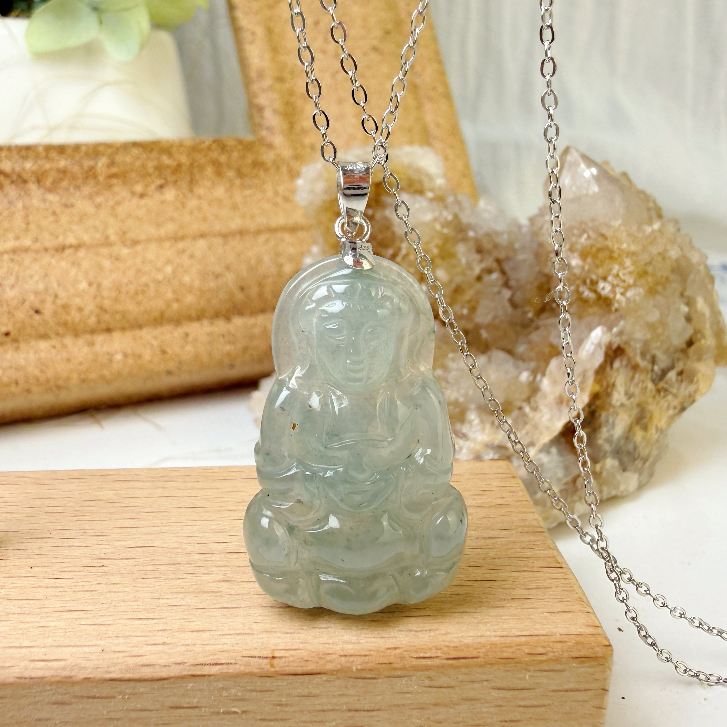 平安/吉祥/靜心-《冰種翡翠站立觀音項鍊》
