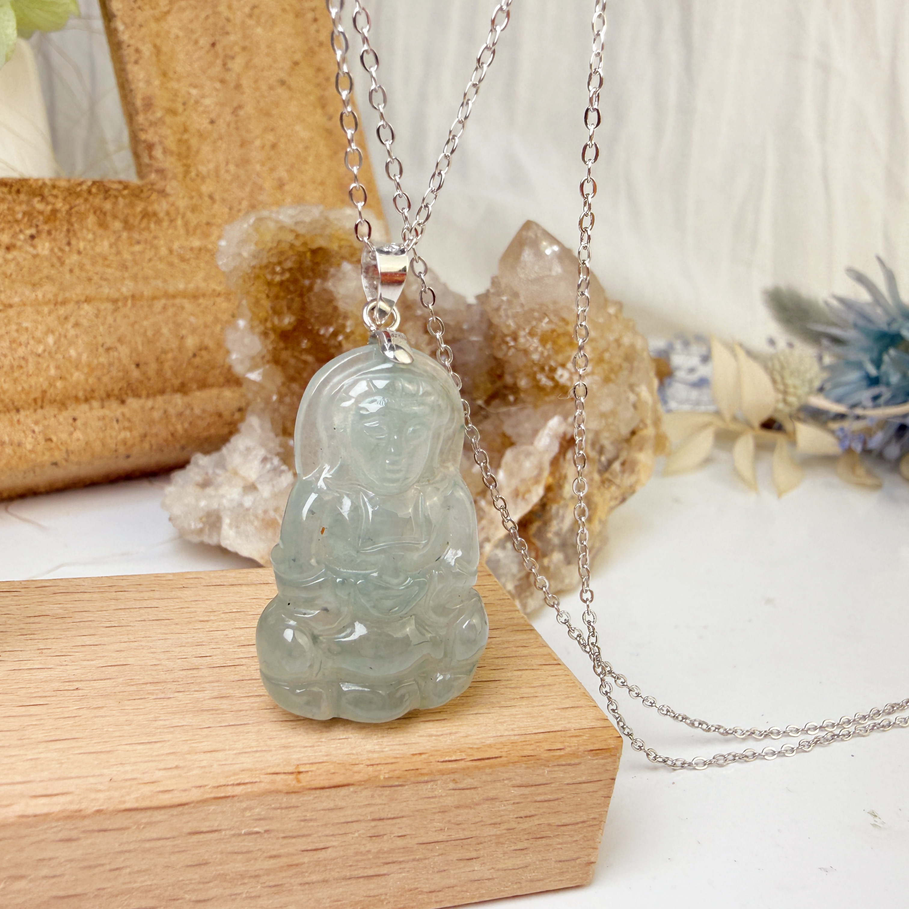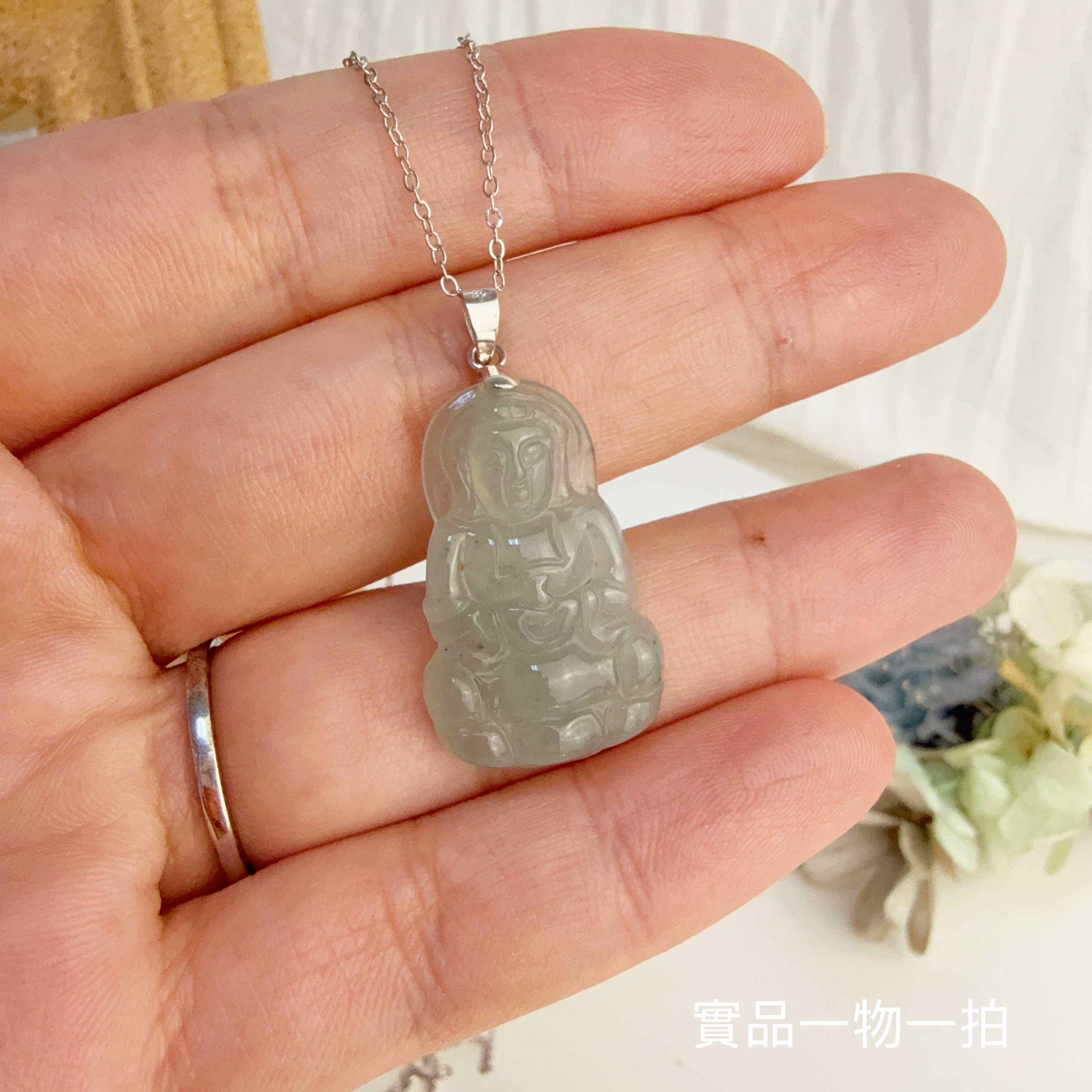 平安/吉祥/靜心-《冰種飄花觀音項鍊》