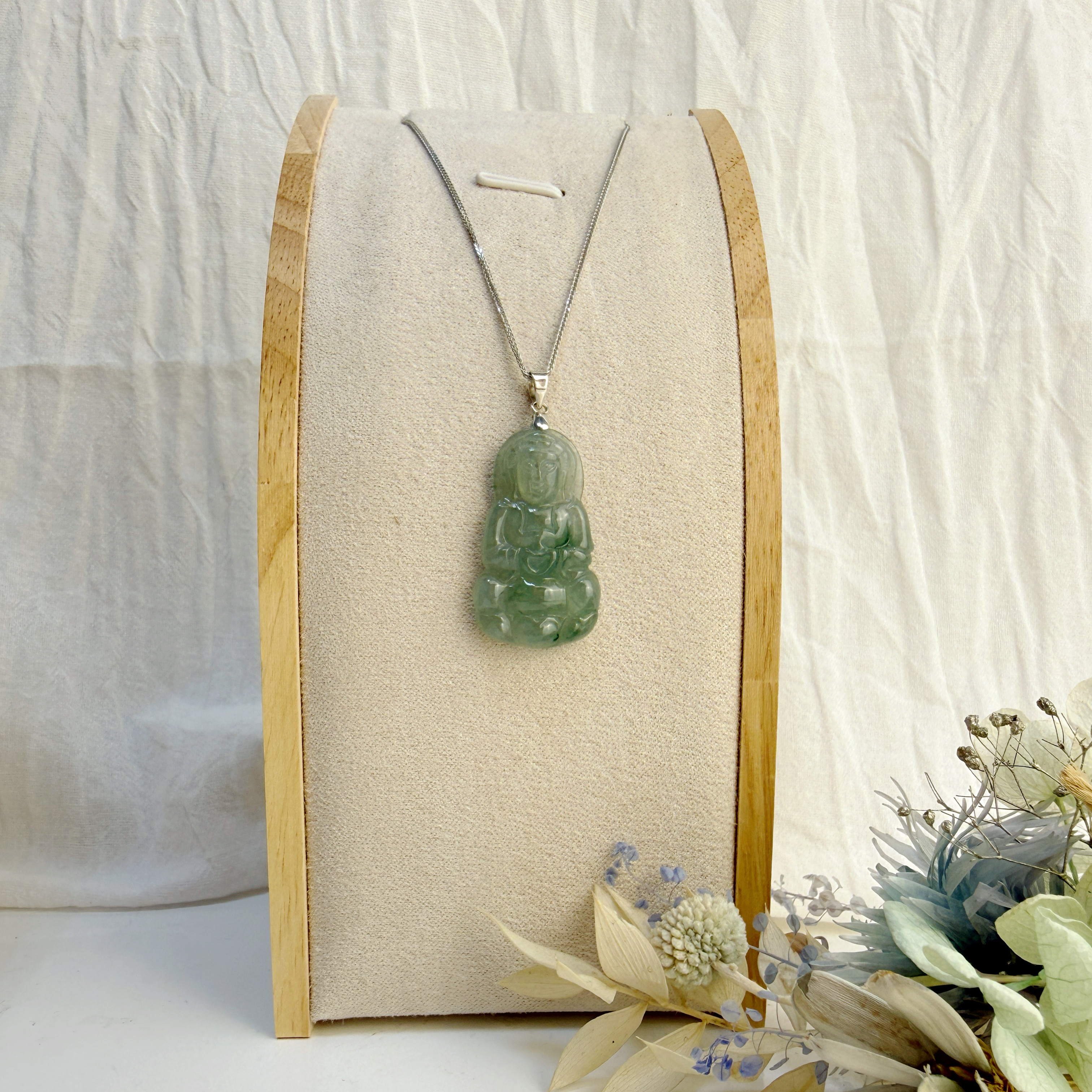 平安吉祥/心靈安定-《綠飄花緬甸玉觀音項鍊》2