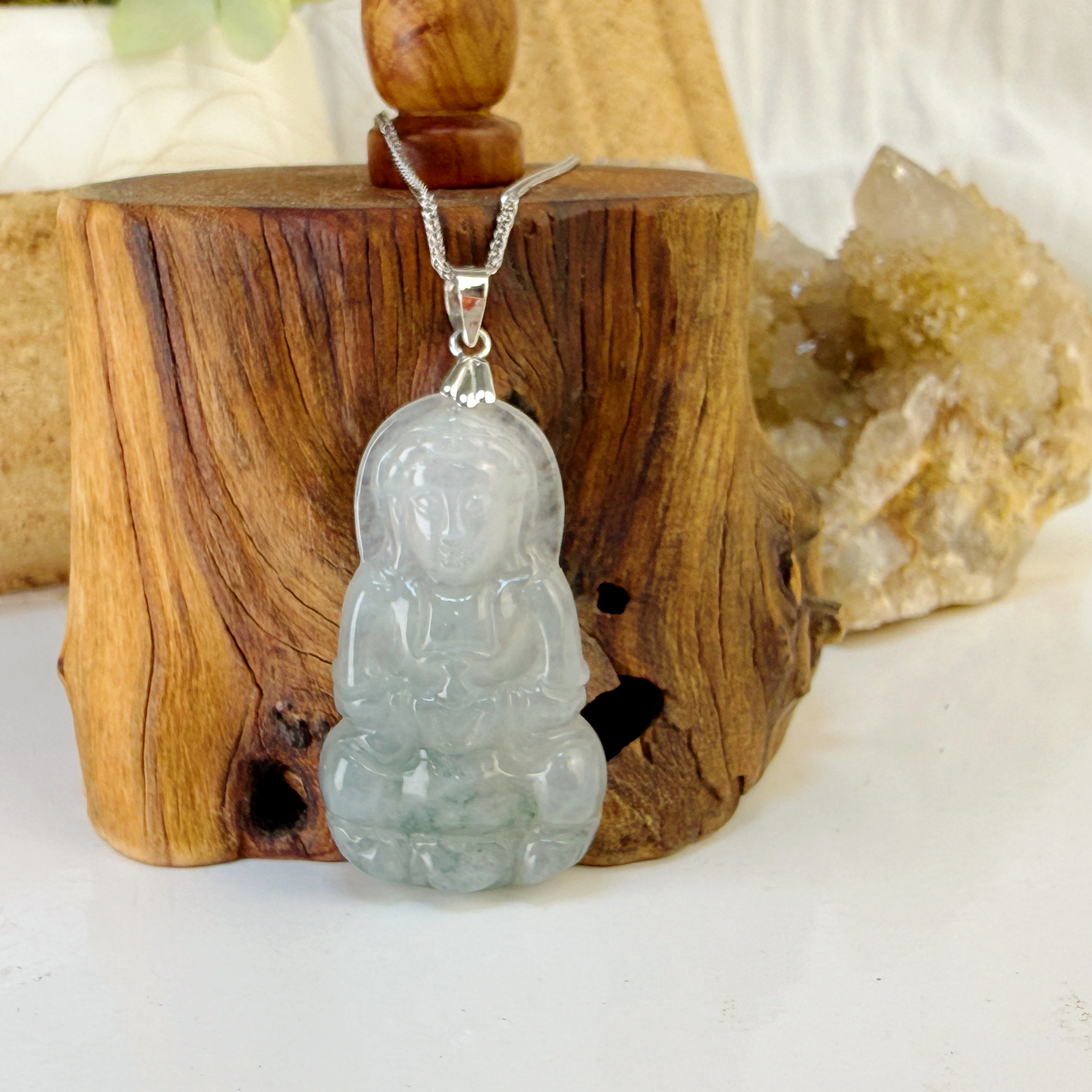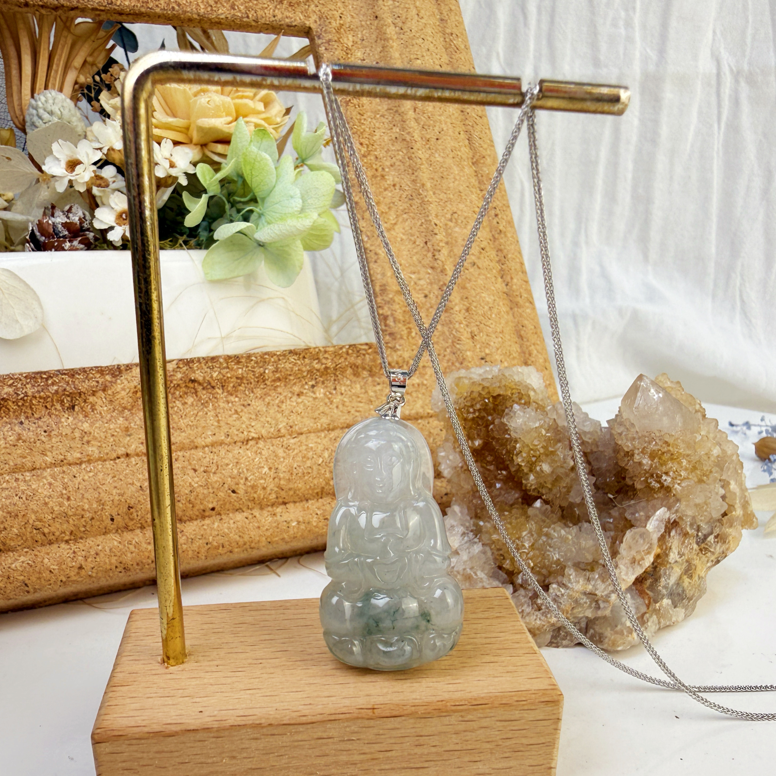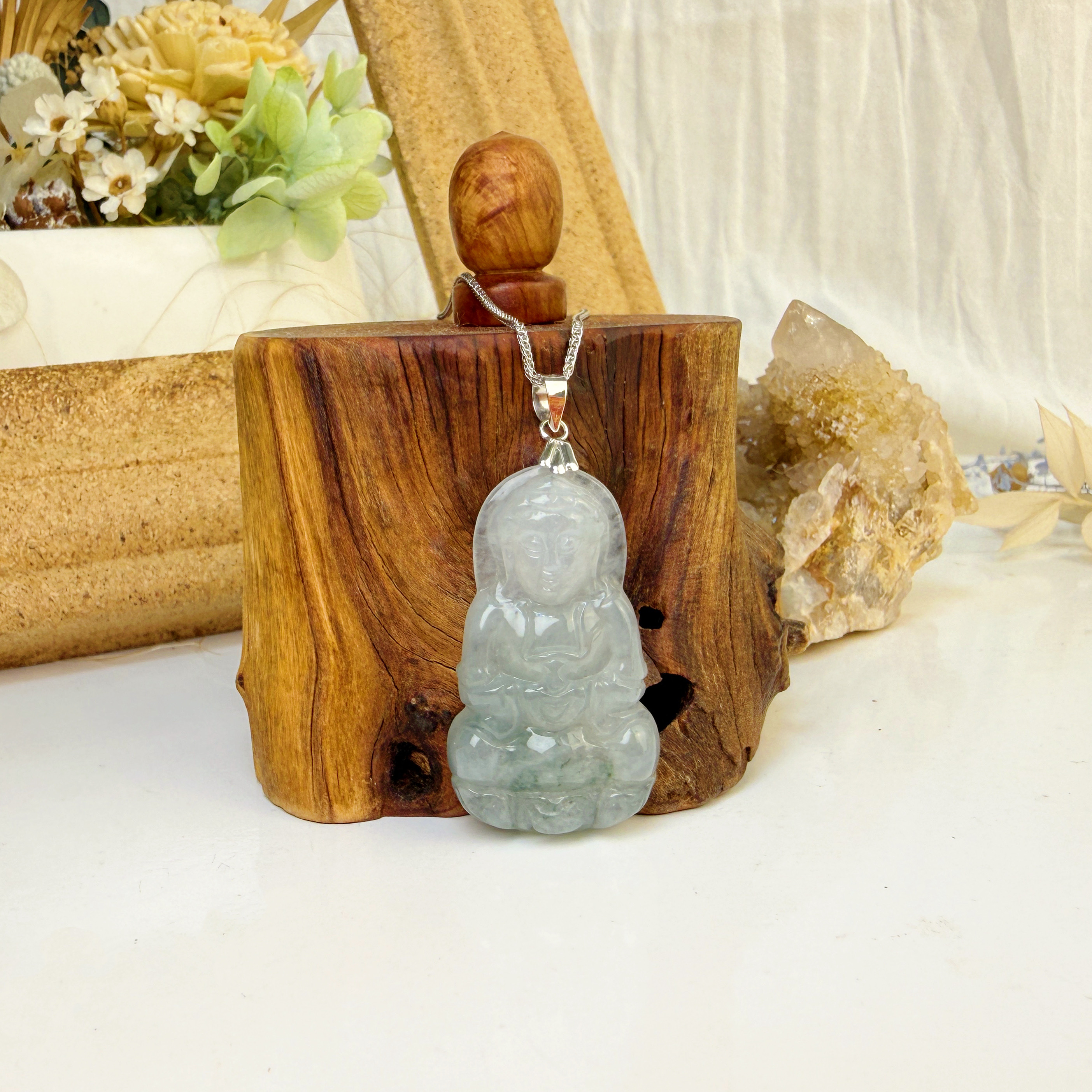 平安/吉祥/靜心-《冰糯種飄花觀音項鍊》