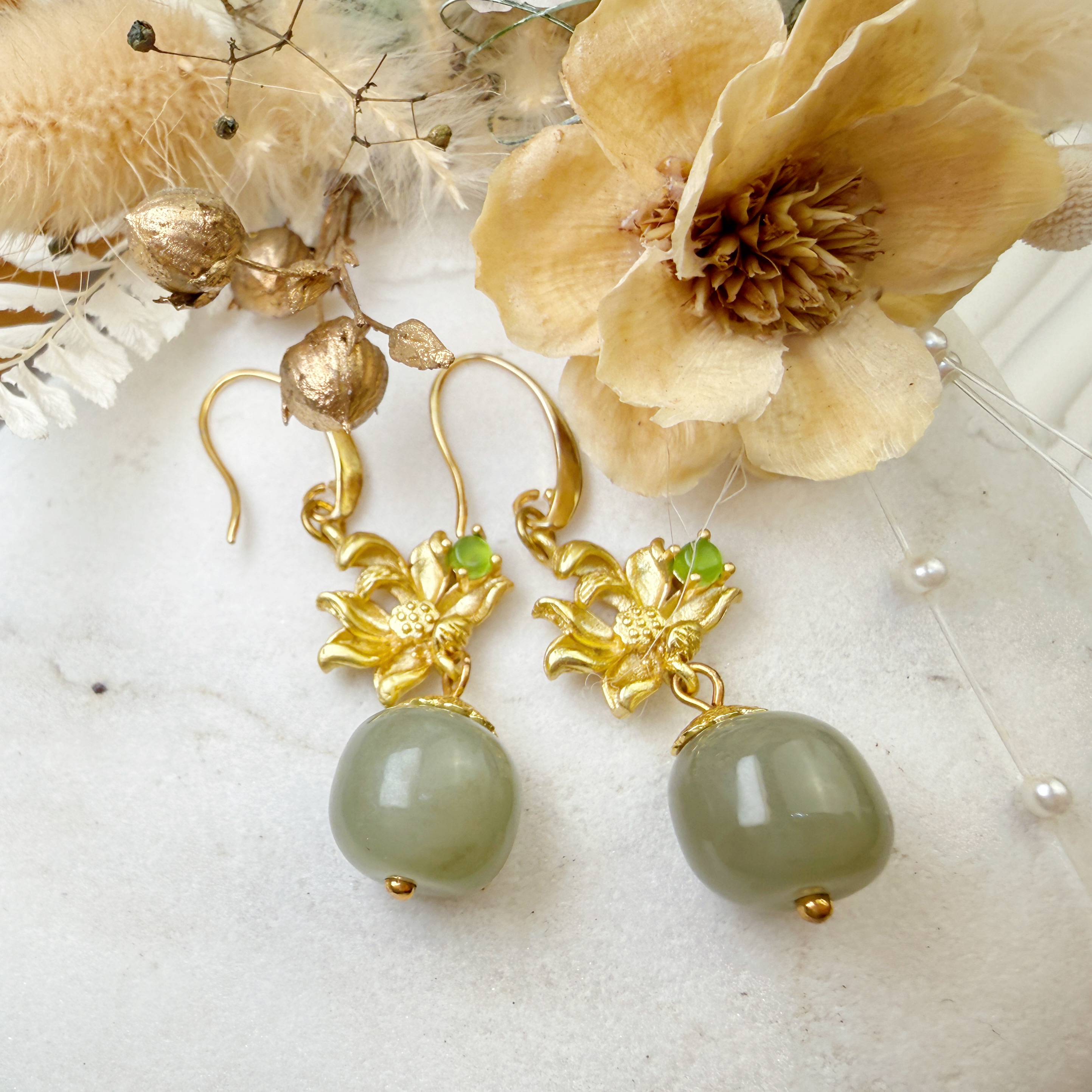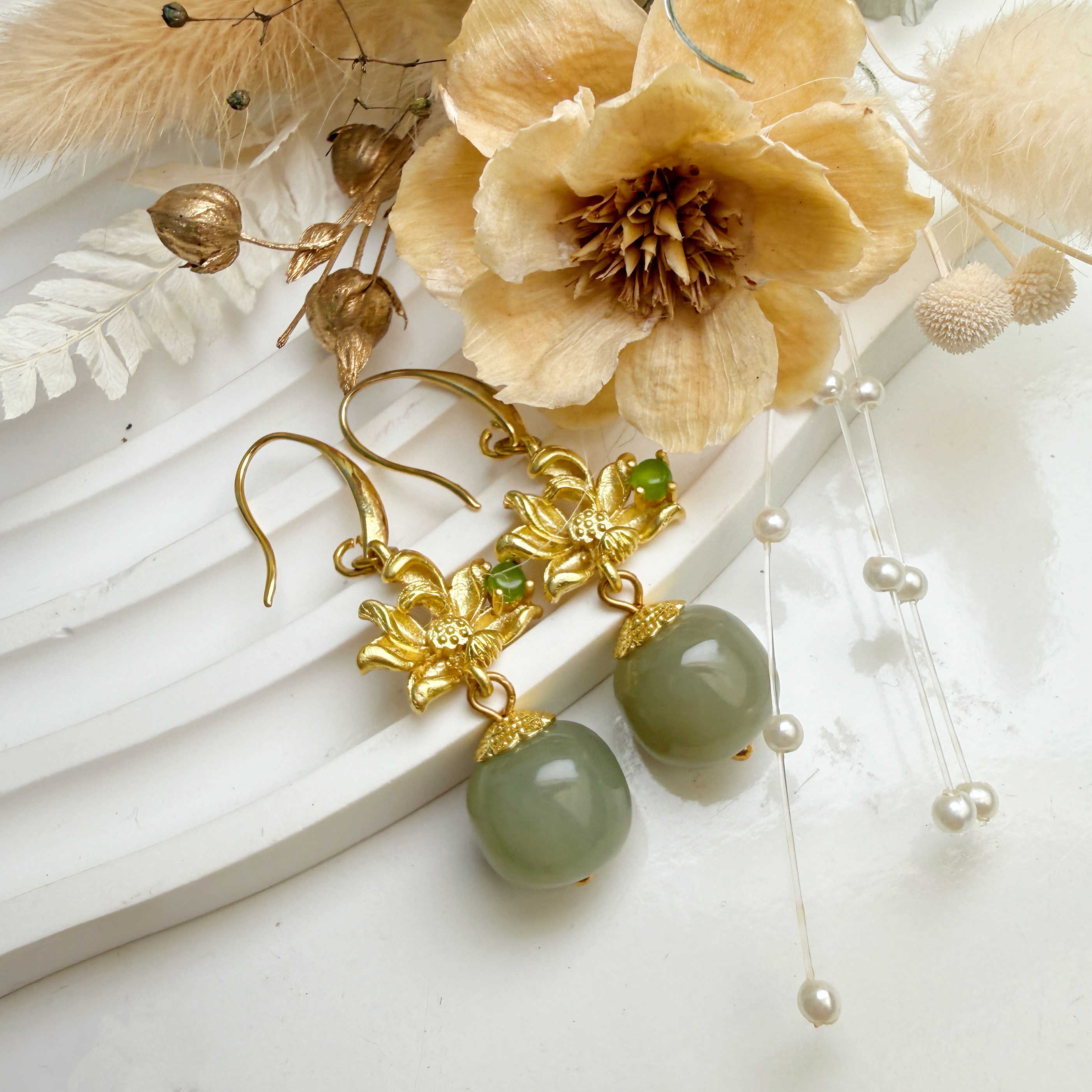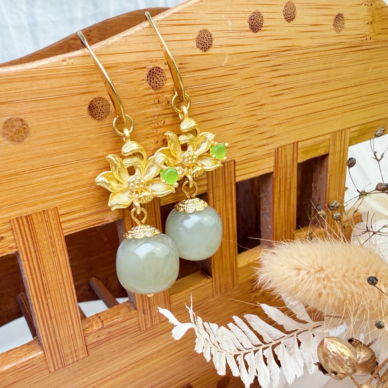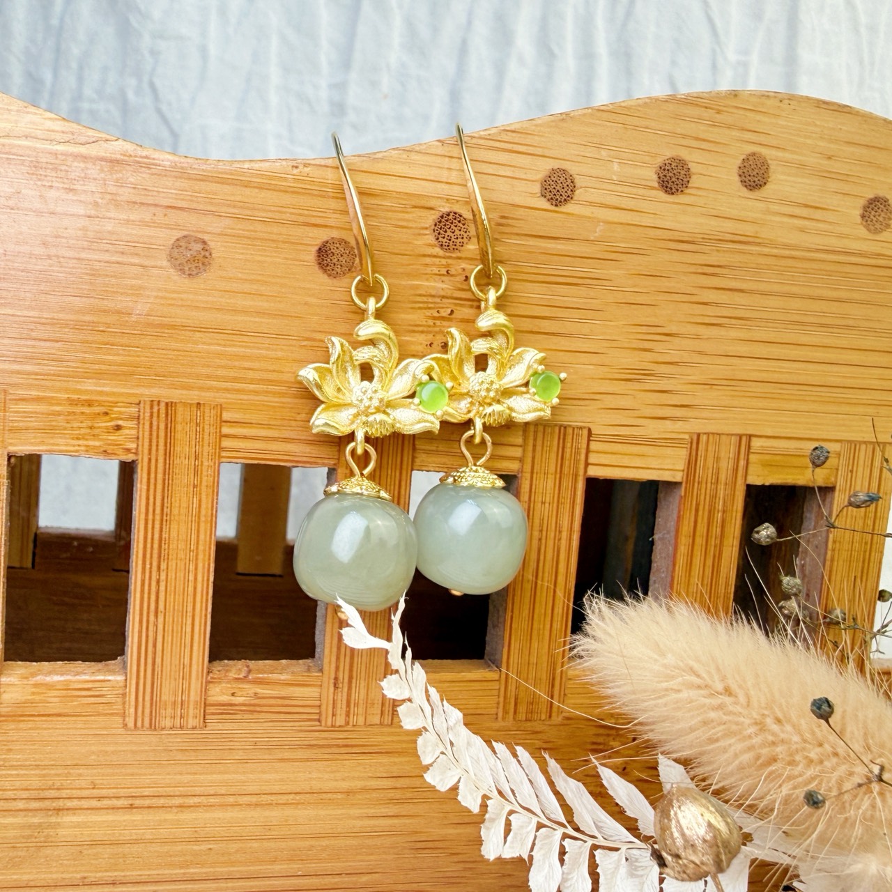 平安/招財/珍藏-《蓮花和田玉耳環》
