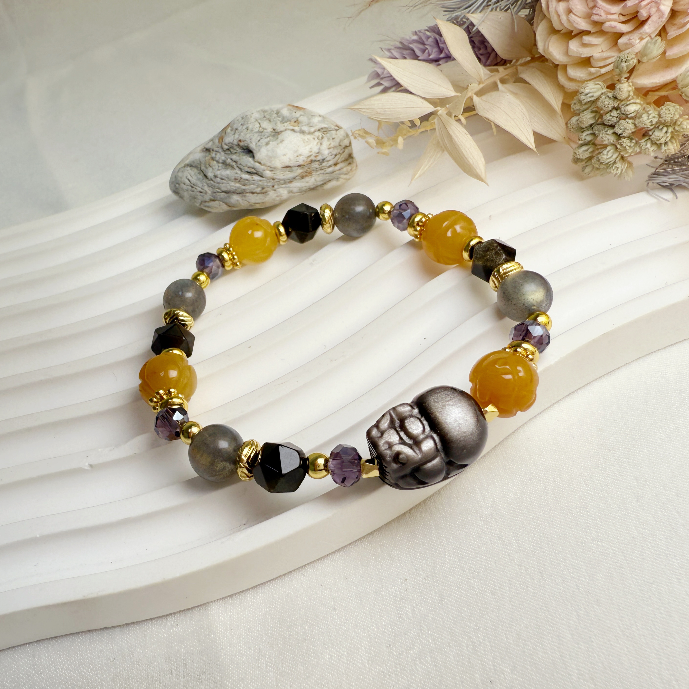 讓銀曜貔貅手鍊為你帶來無盡的好運和機會。它能保護你免受邪惡勢力的侵害,特別搭配黃玉雕刻的蓮花珠,將財富和繁榮帶入你的生活中。