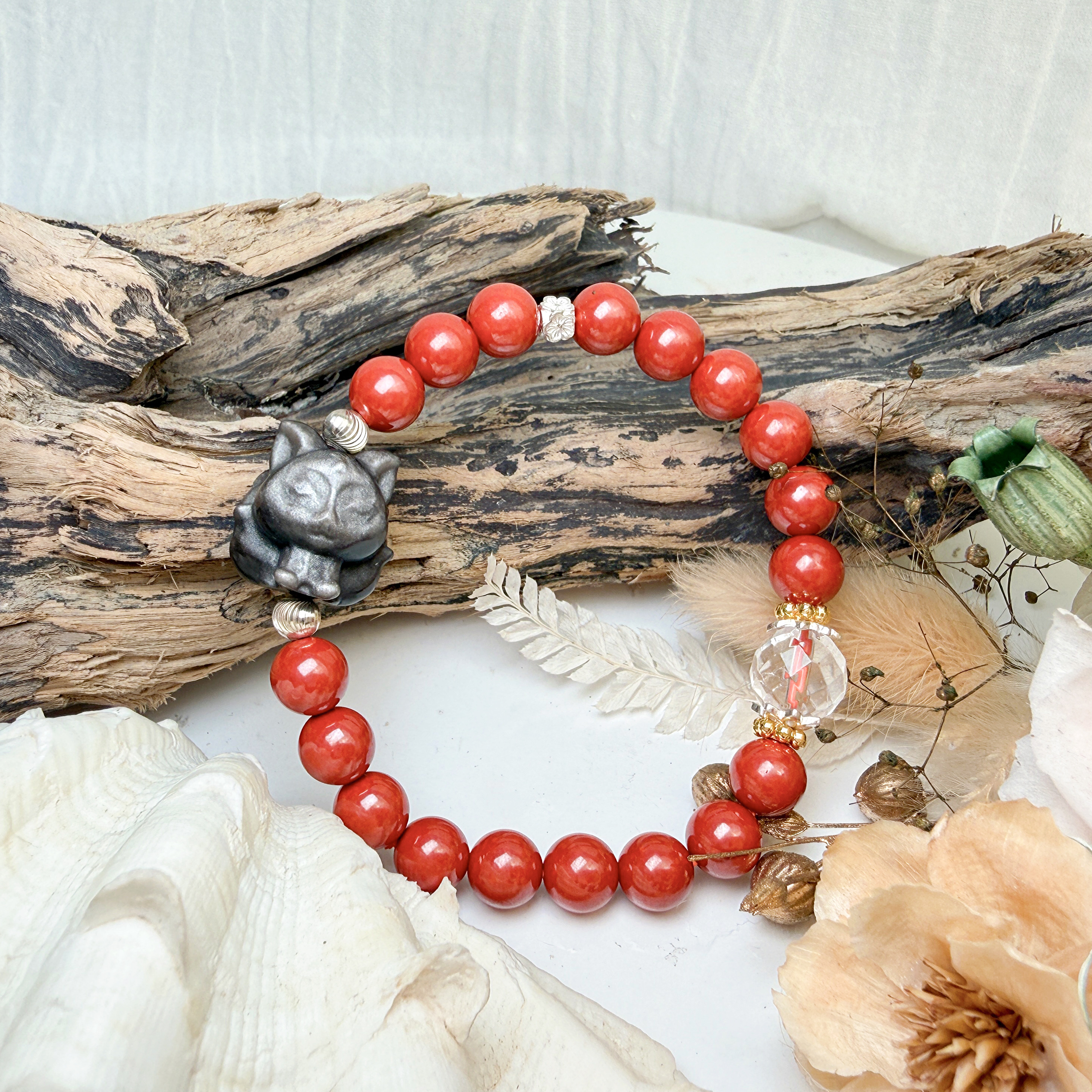 融合東方靈性文化與現代設計的手鍊,嚴選帝王砂級硃砂,搭配銀曜光澤,象徵守護與轉化,為你打造專屬的強大氣場。