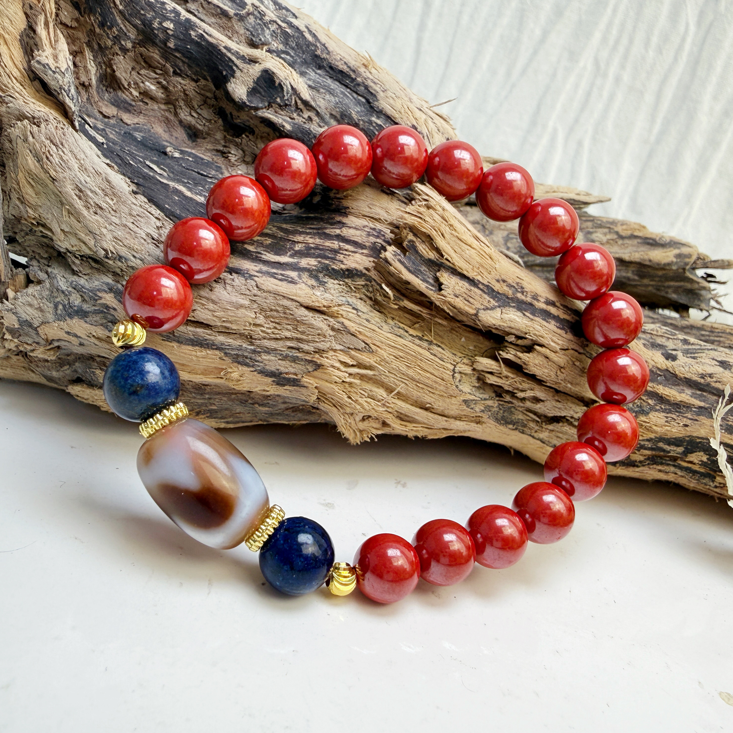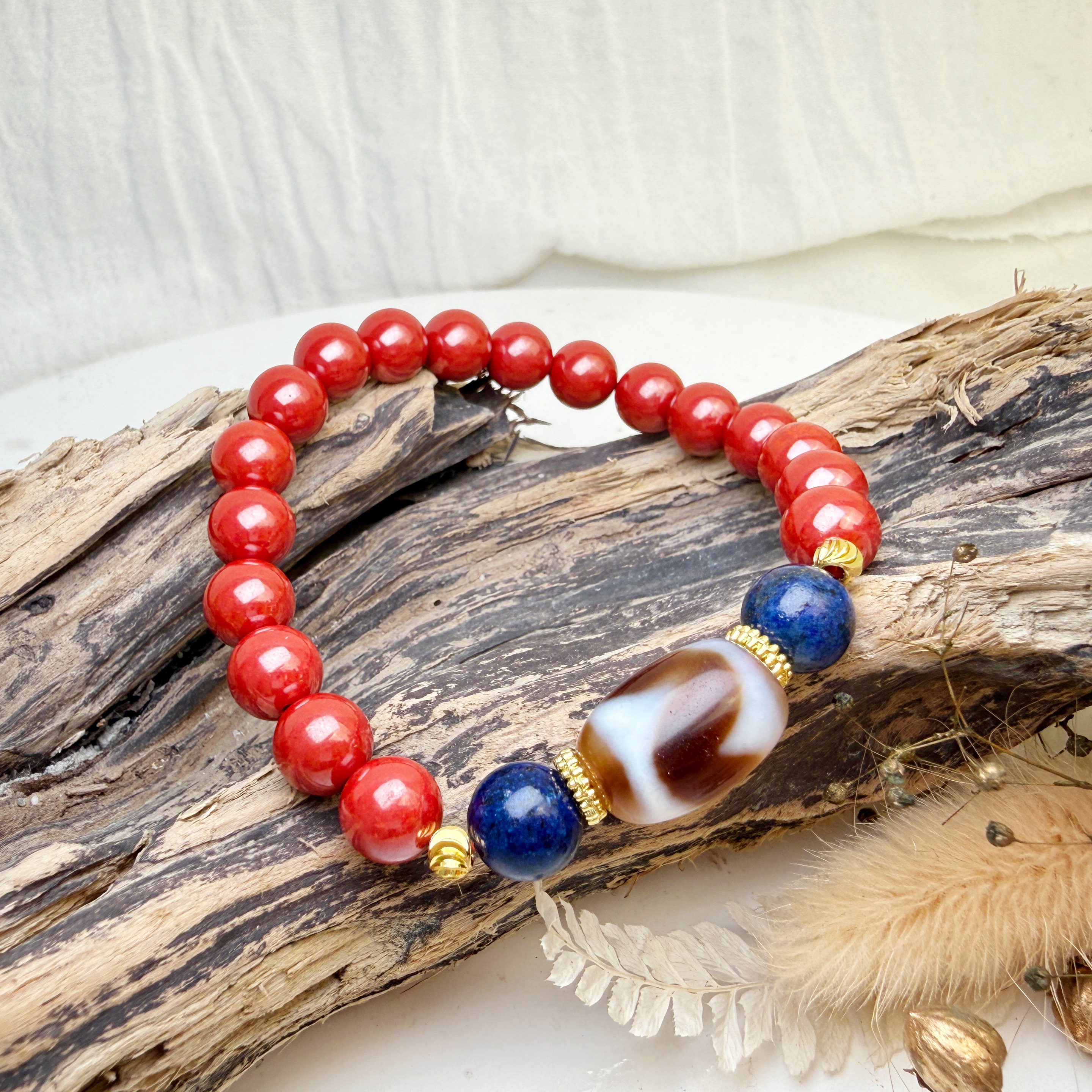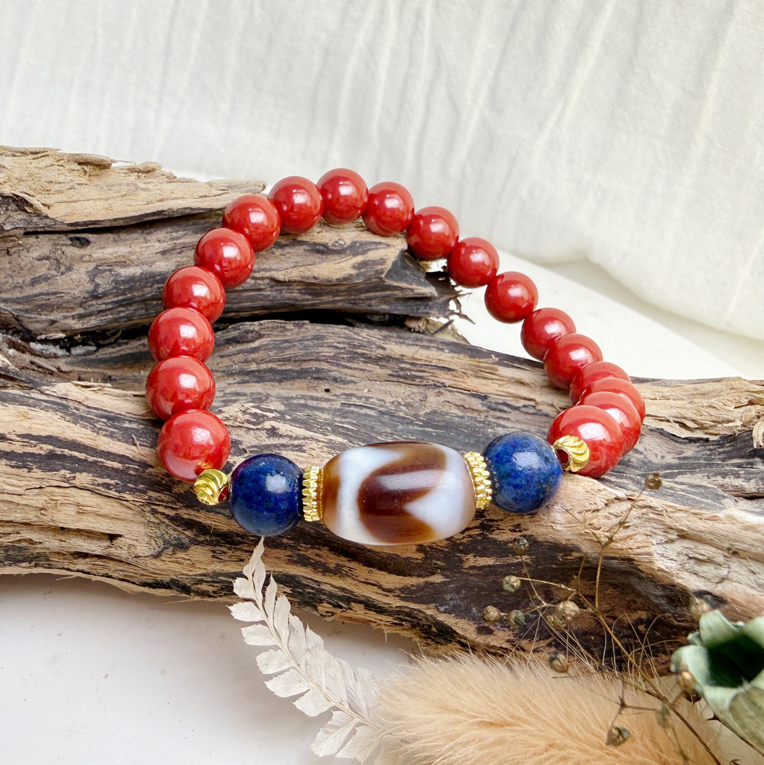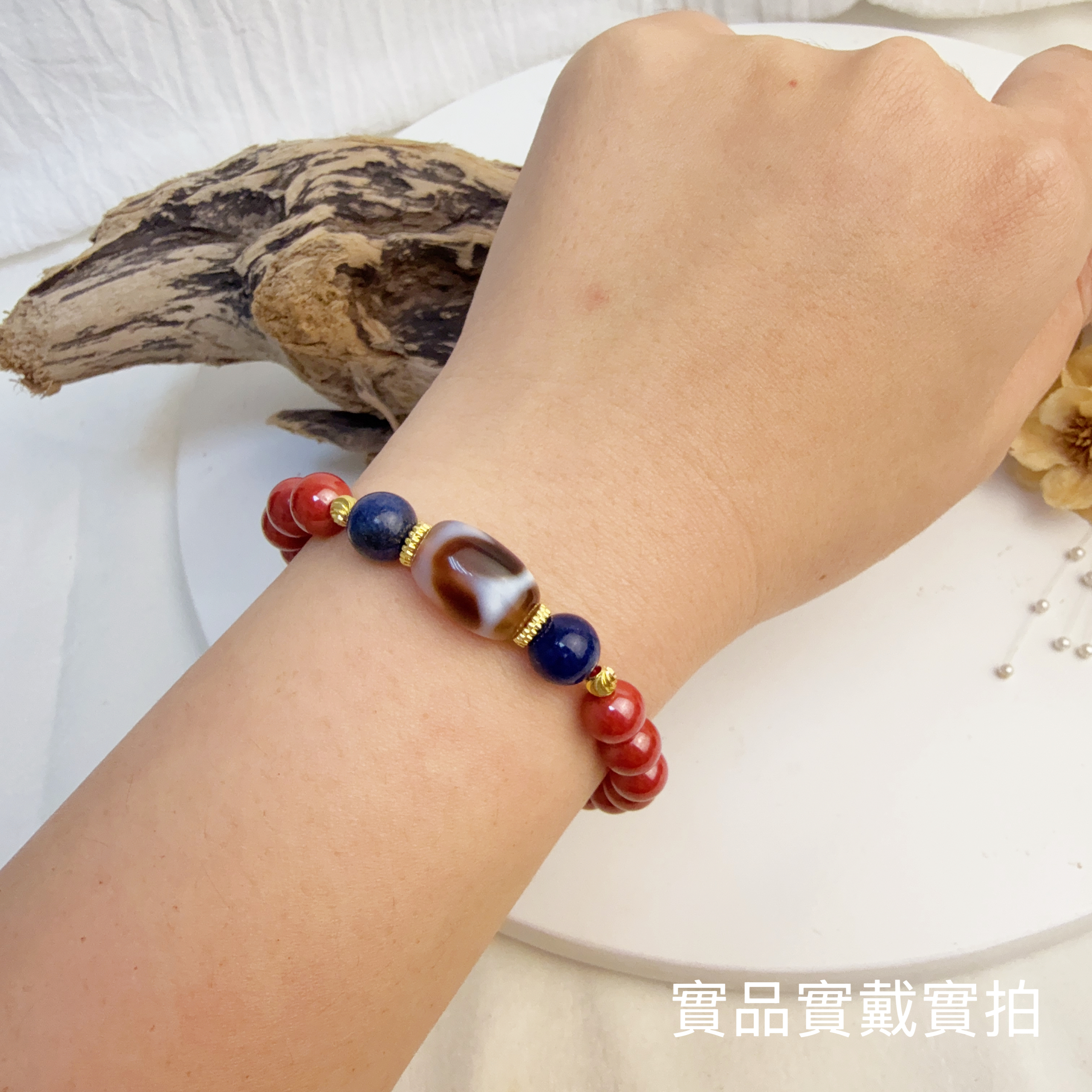 心靈寶石/招財/擋煞-《虎牙天珠青金石硃砂手鍊》