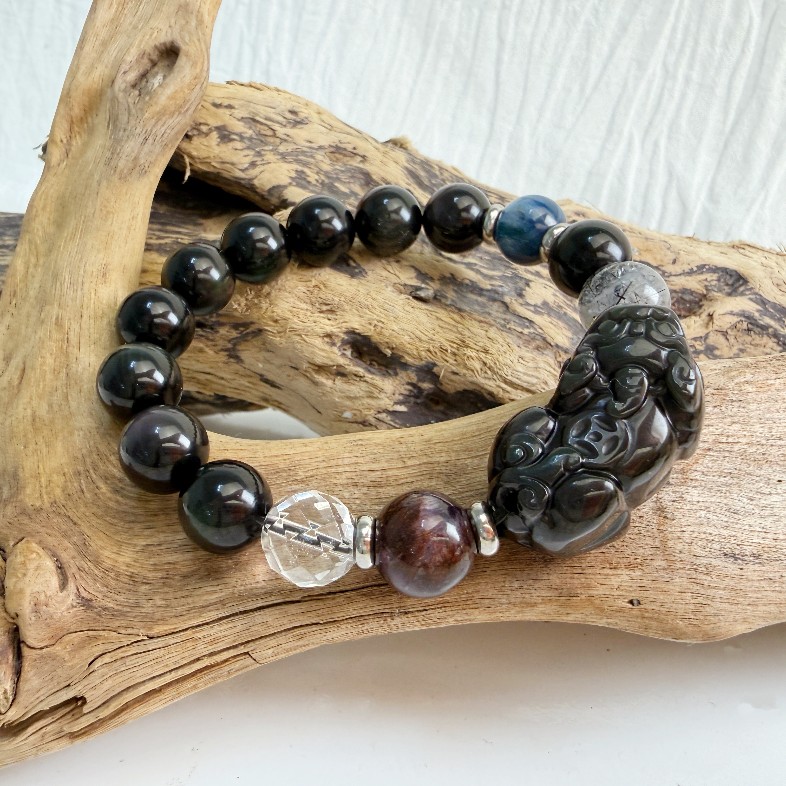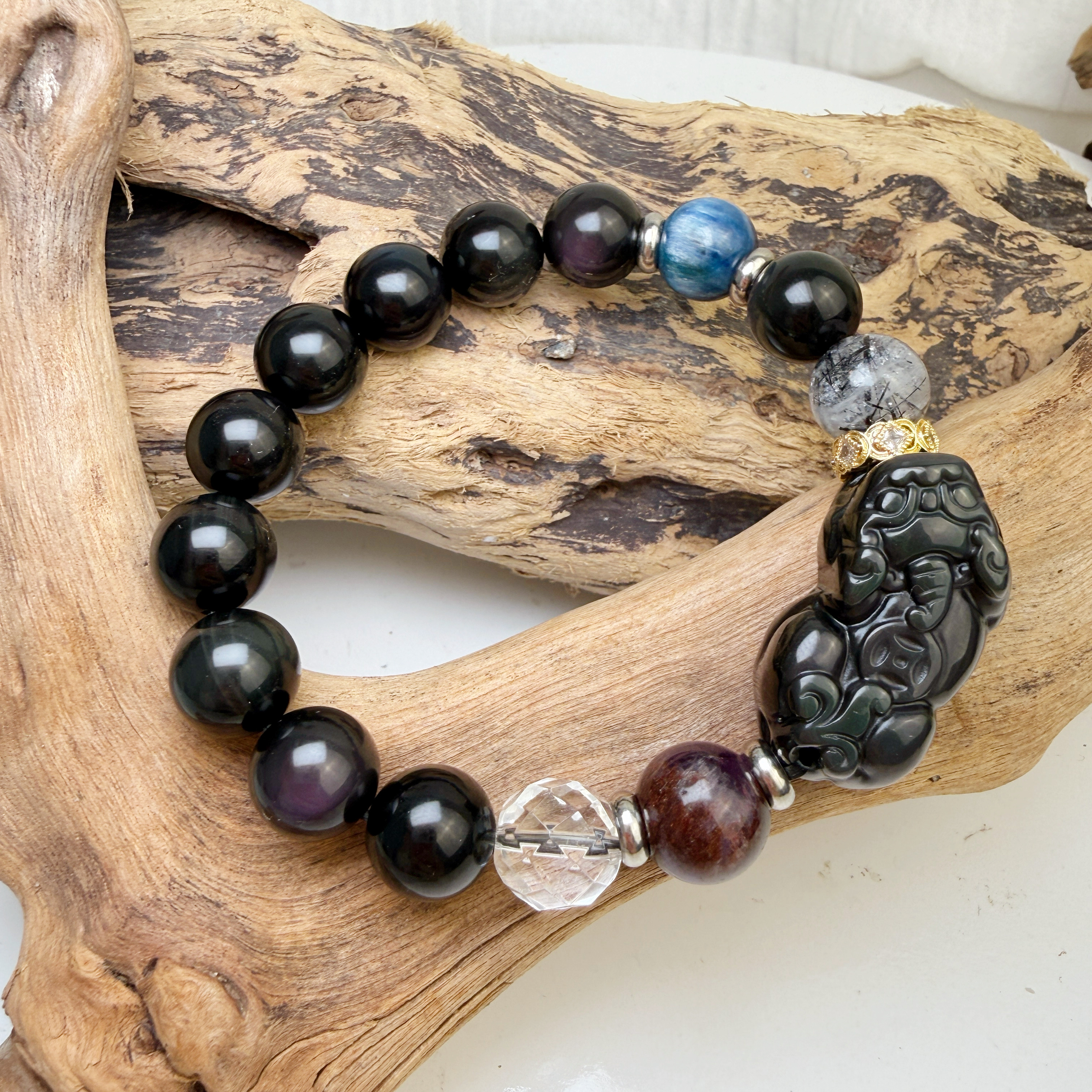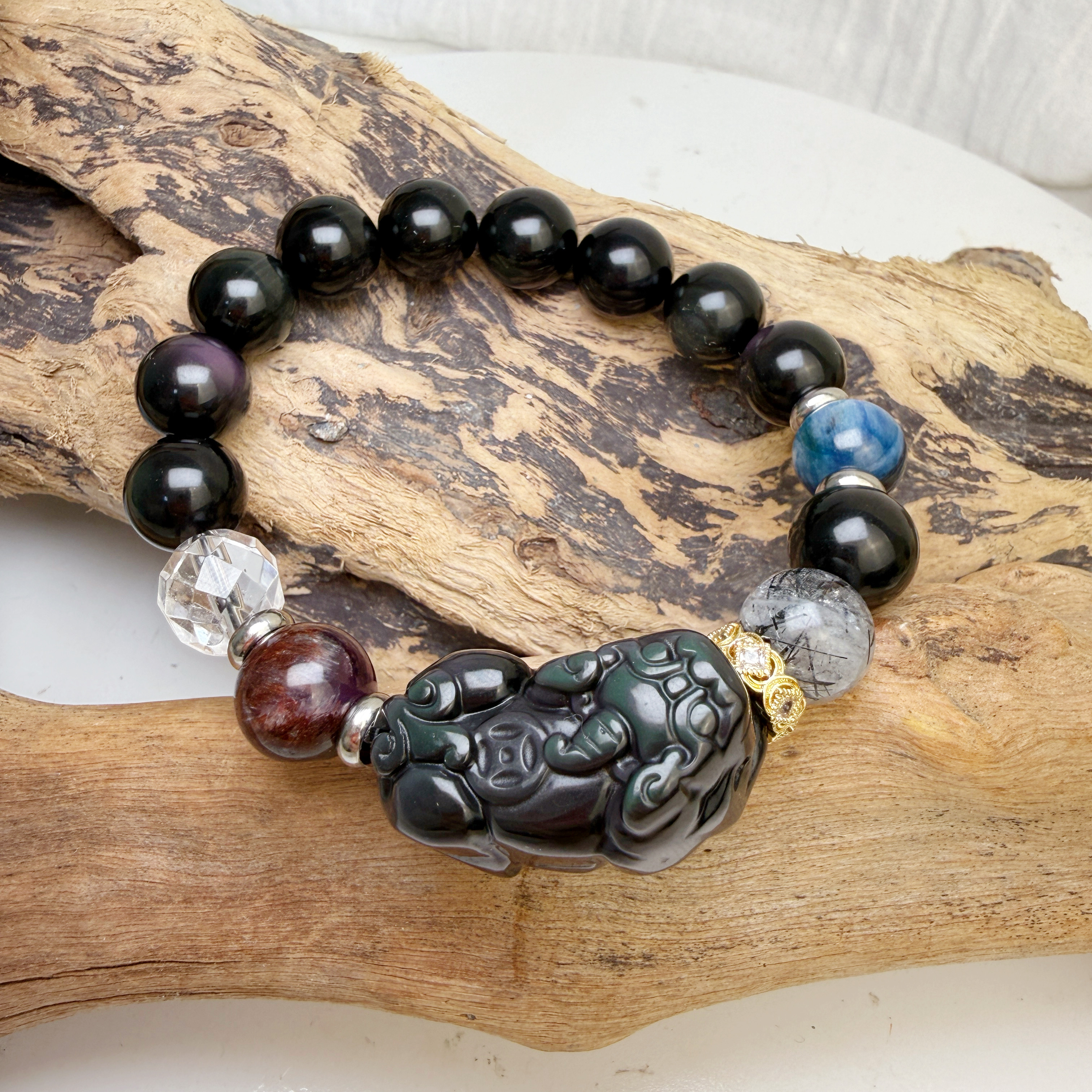 招財擋煞/水晶能量-《彩虹黑曜貔貅多寶水晶手鍊》