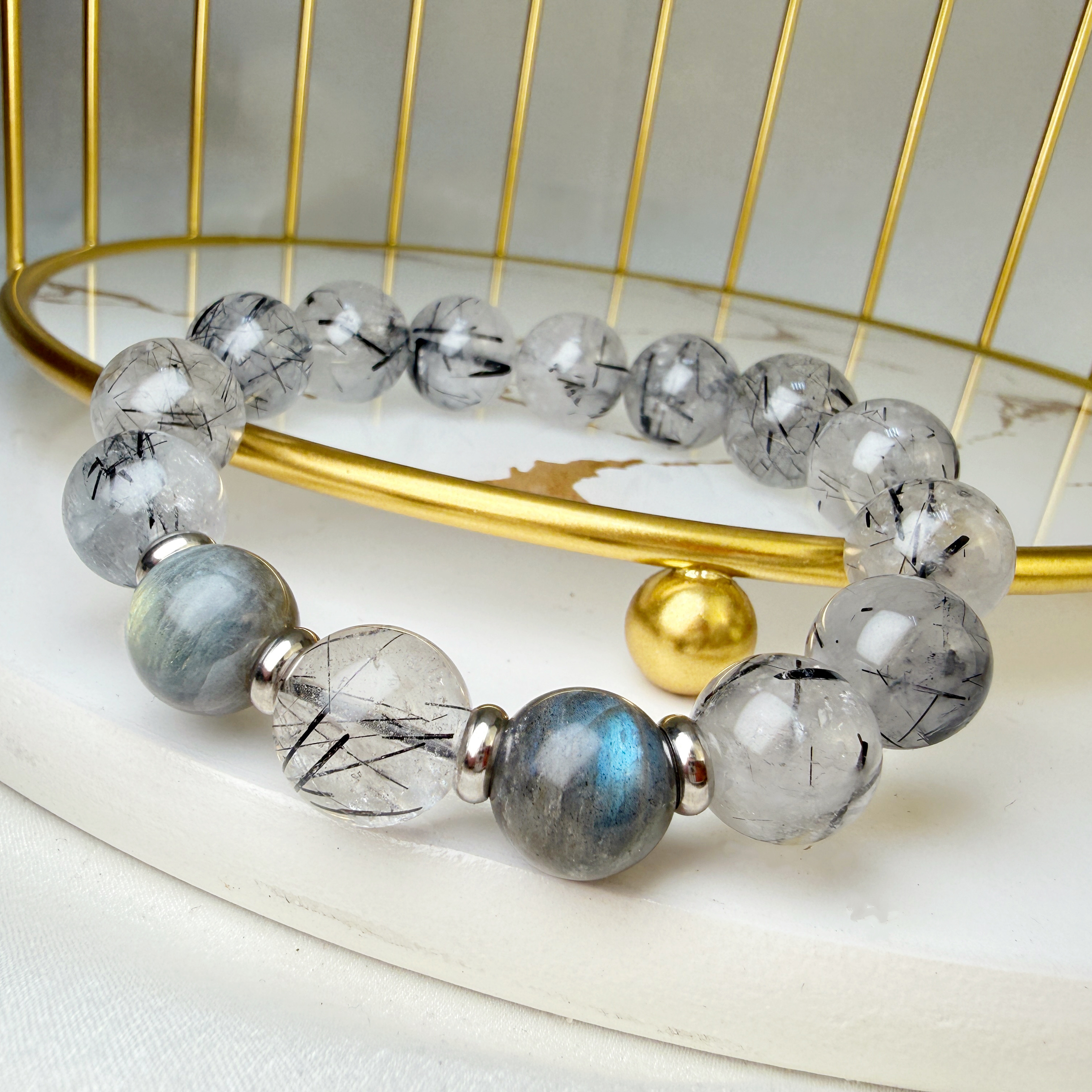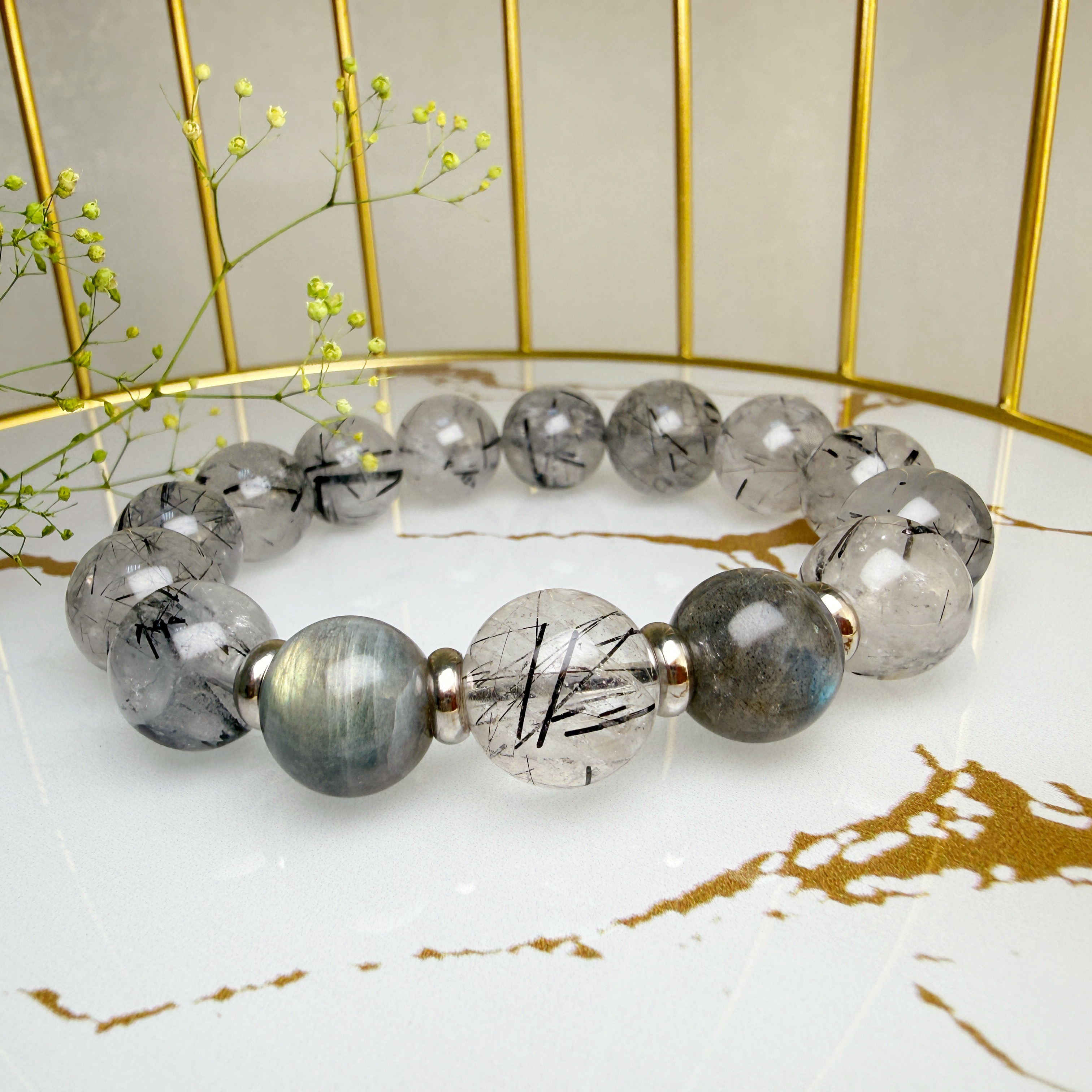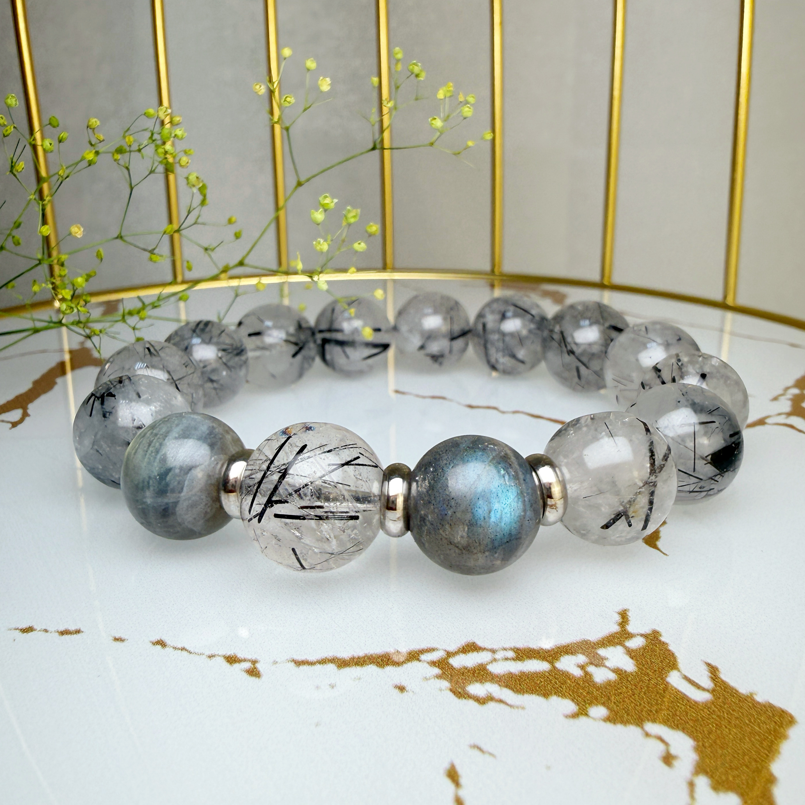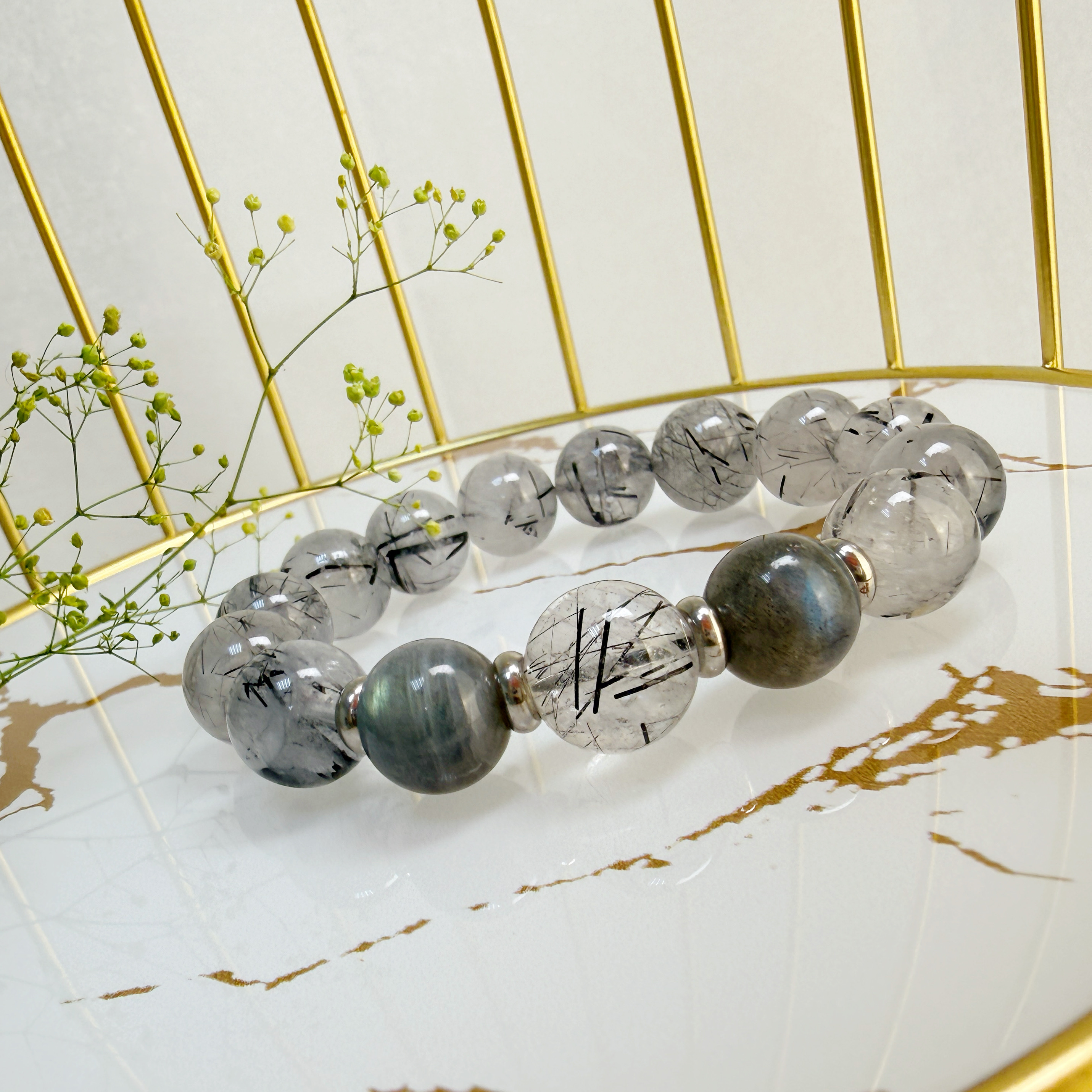 招財/擋煞/防小人-《拉長石黑髮晶手鍊》
