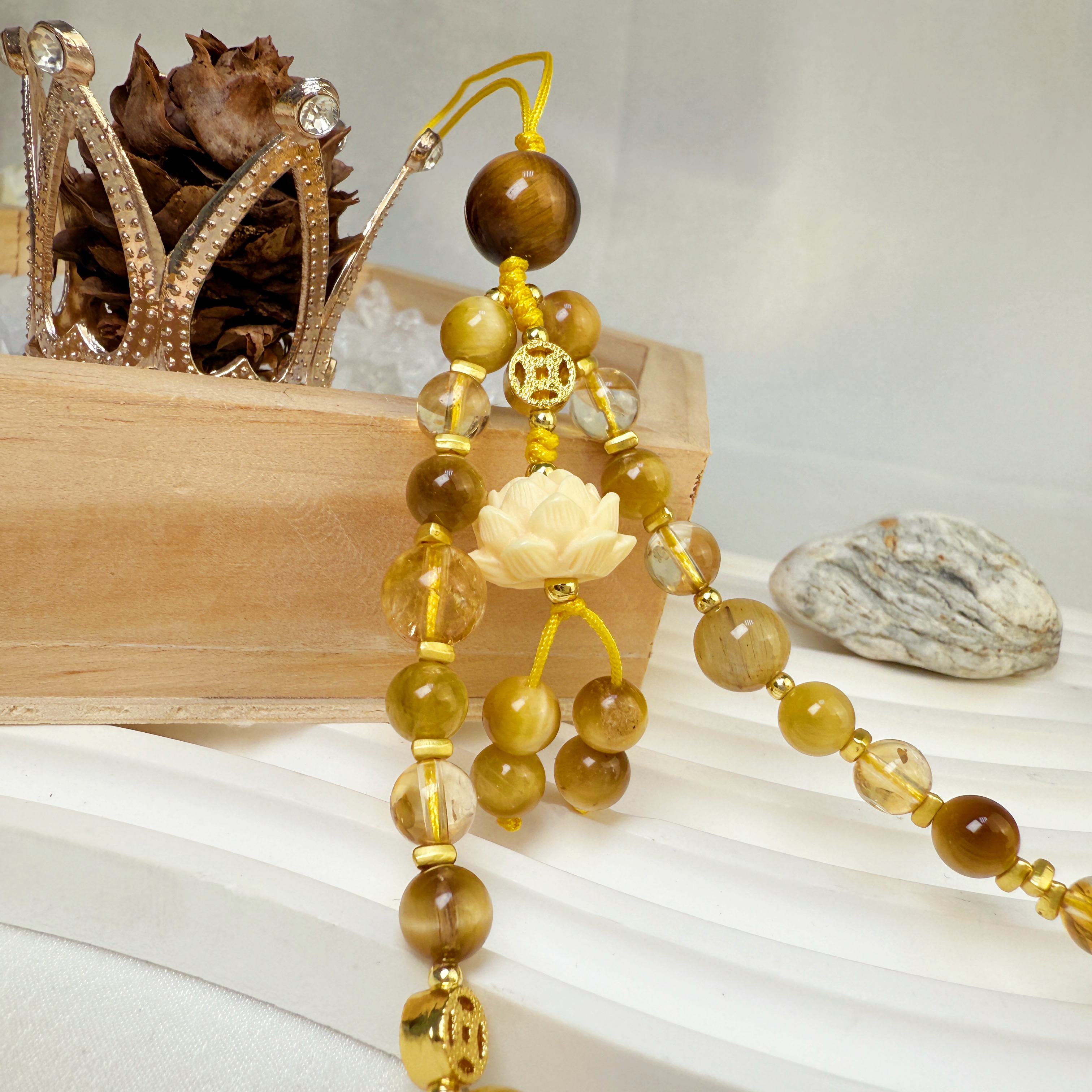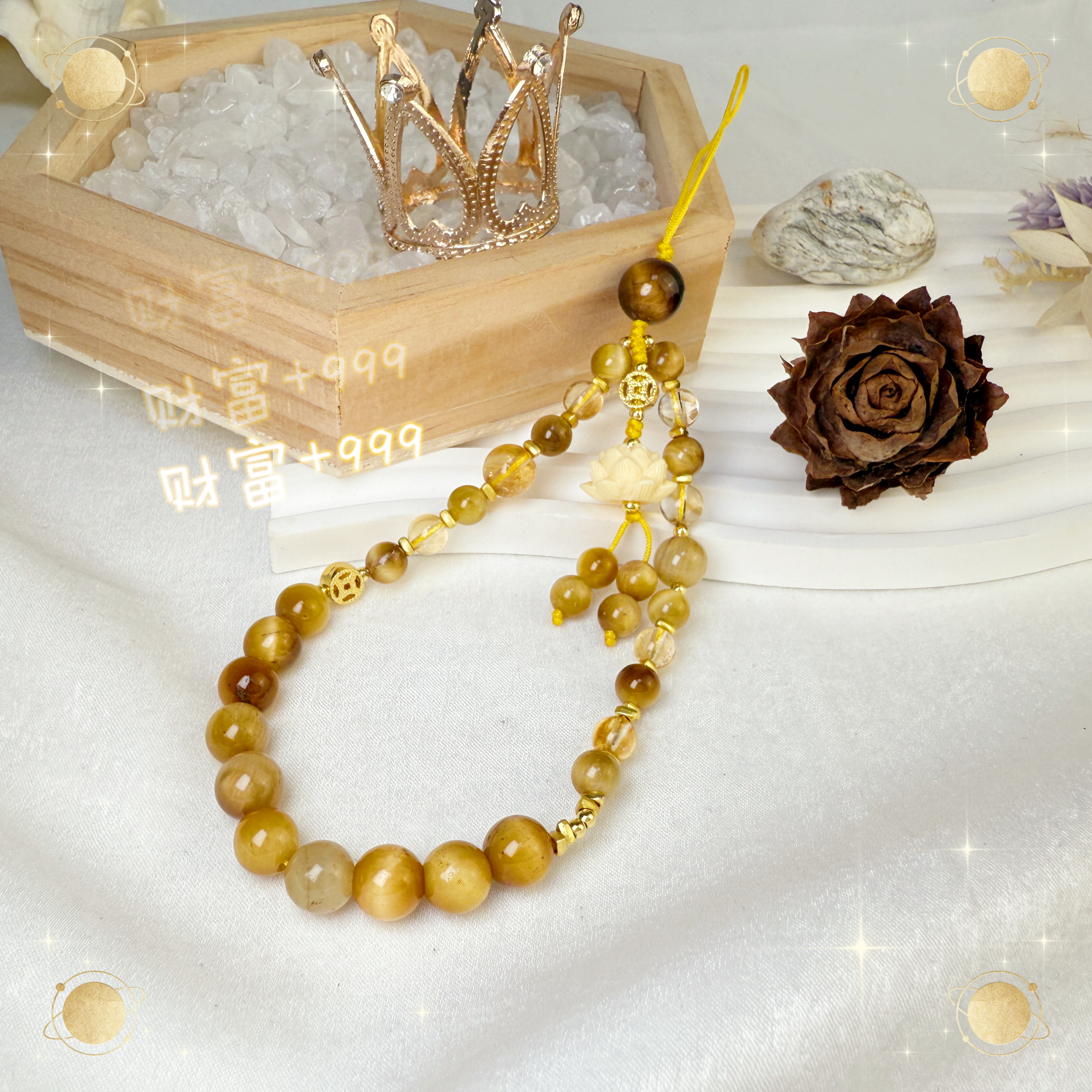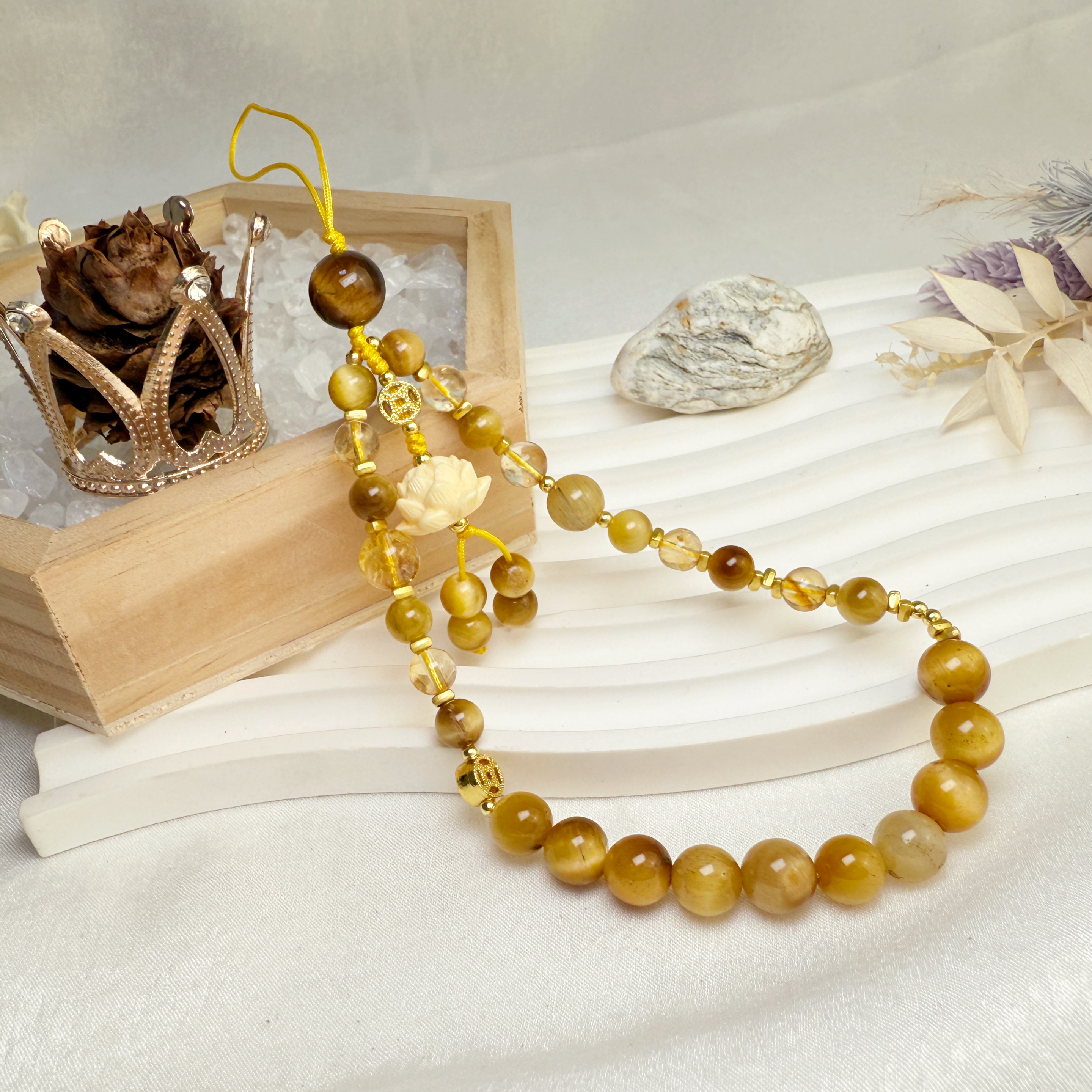 招財納福/蓮花靜心-《黃金虎眼蓮花手機繩吊飾》
