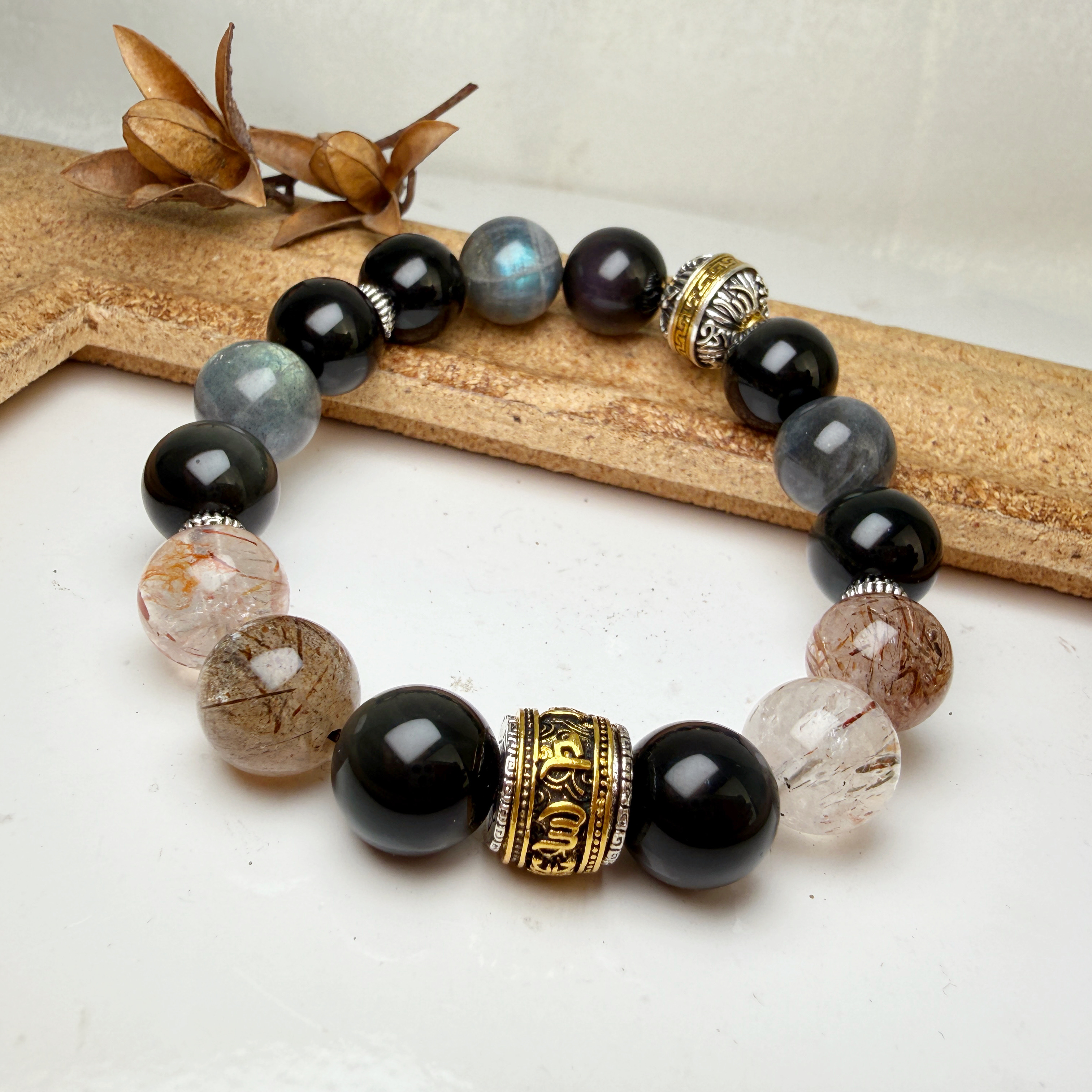搭配黑曜石、拉長石,讓水晶手鍊更顯時尚設計風格,同時兼具磁場能量與美學!