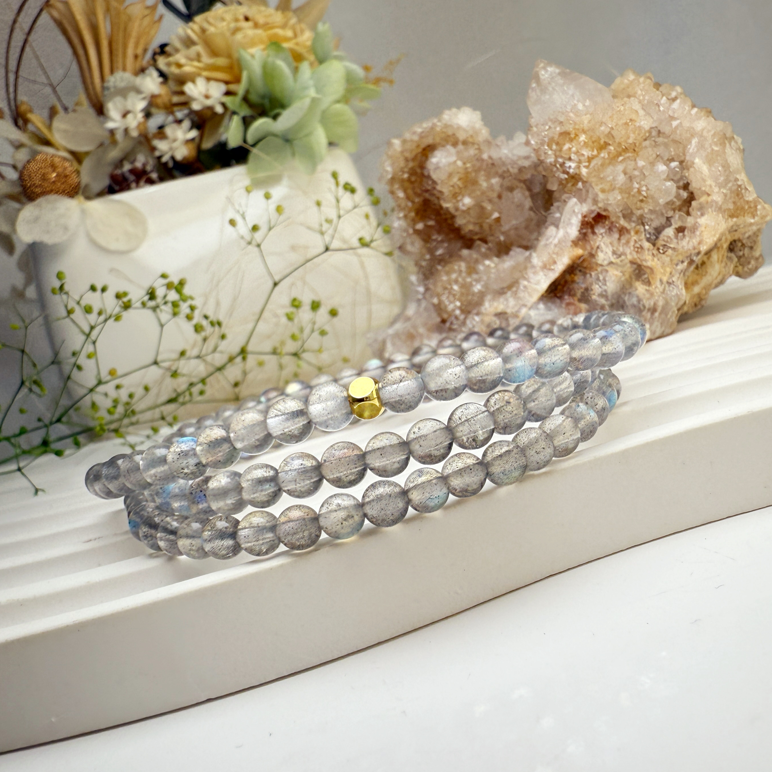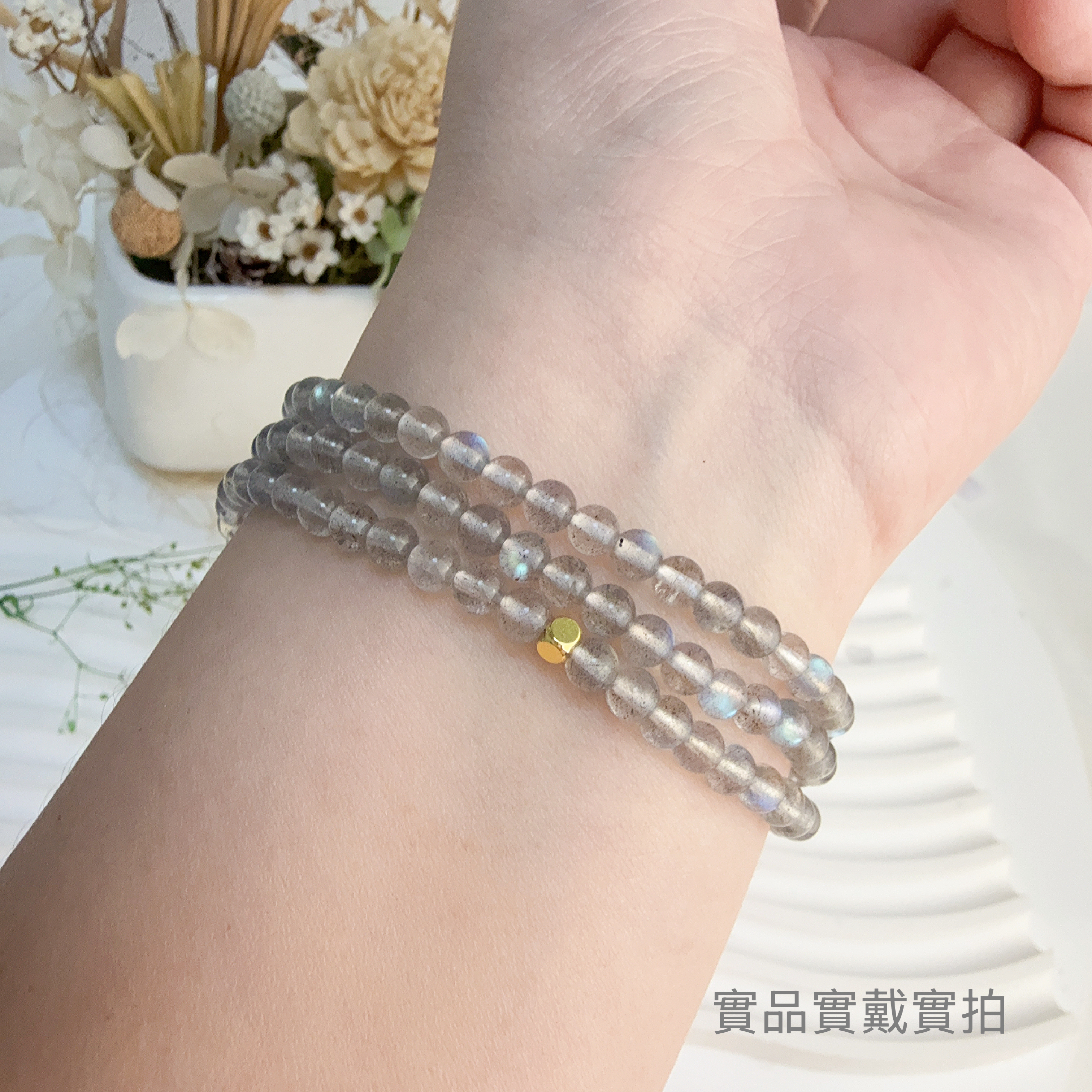 擋煞/沉穩/堅定-《4mm三圈彩虹拉長石手鍊》