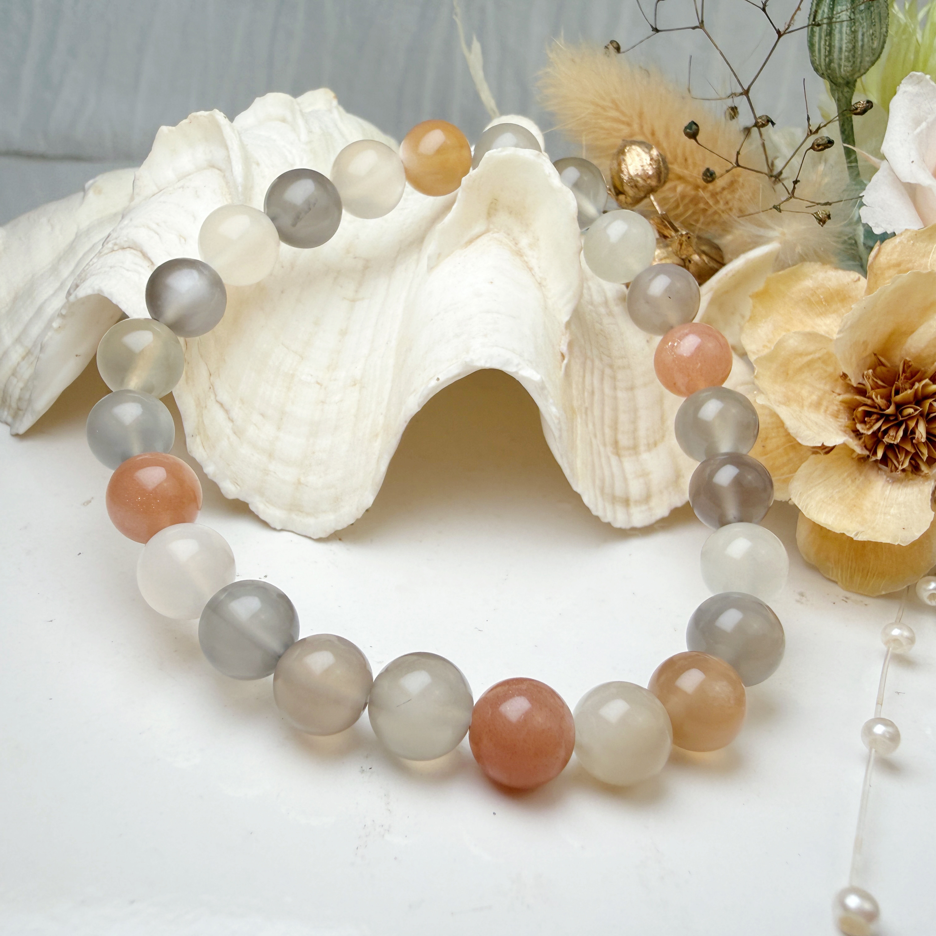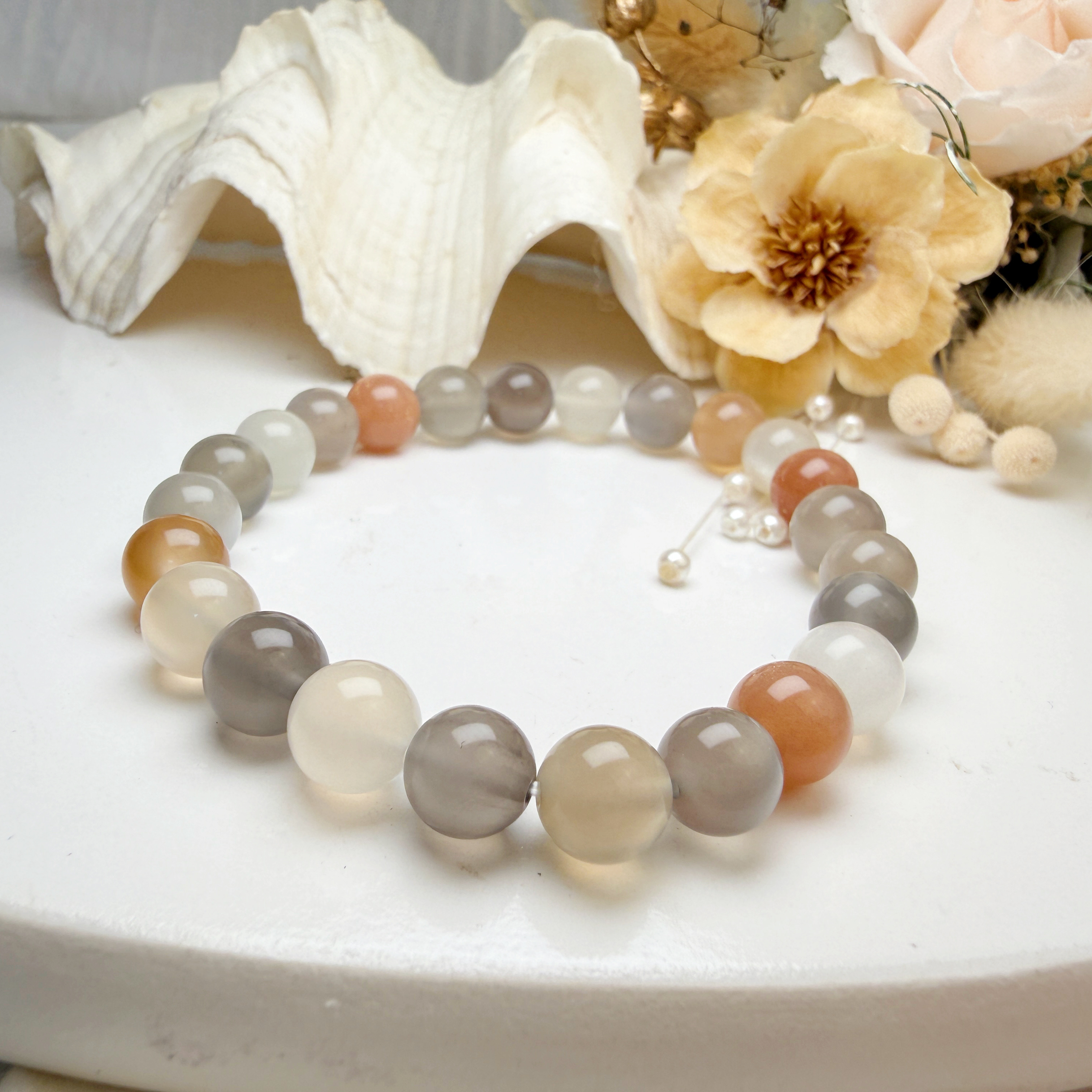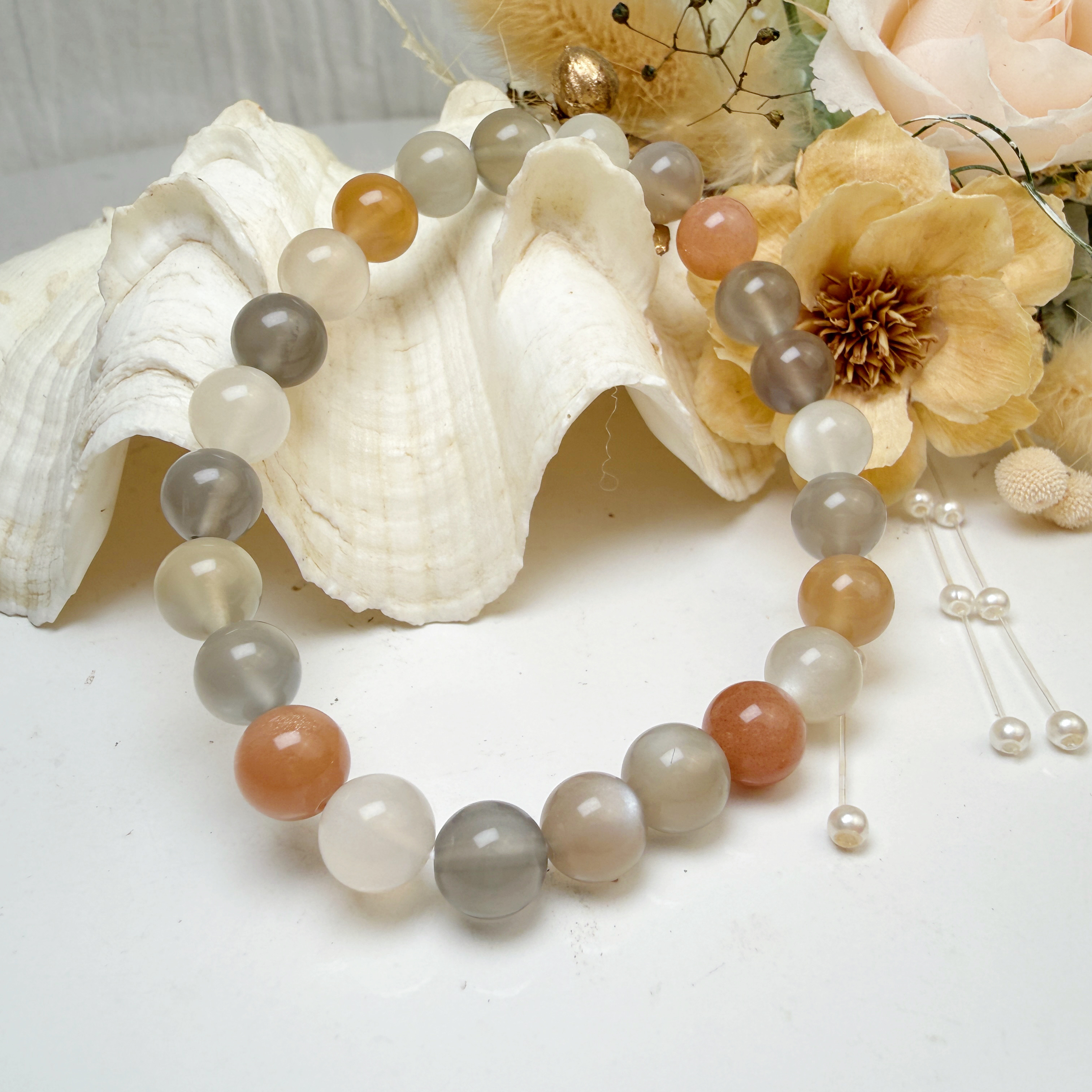 每一顆月光石隨光流轉,閃耀如極光般的夢幻光韻,彷彿為心靈披上一層安定的守護。