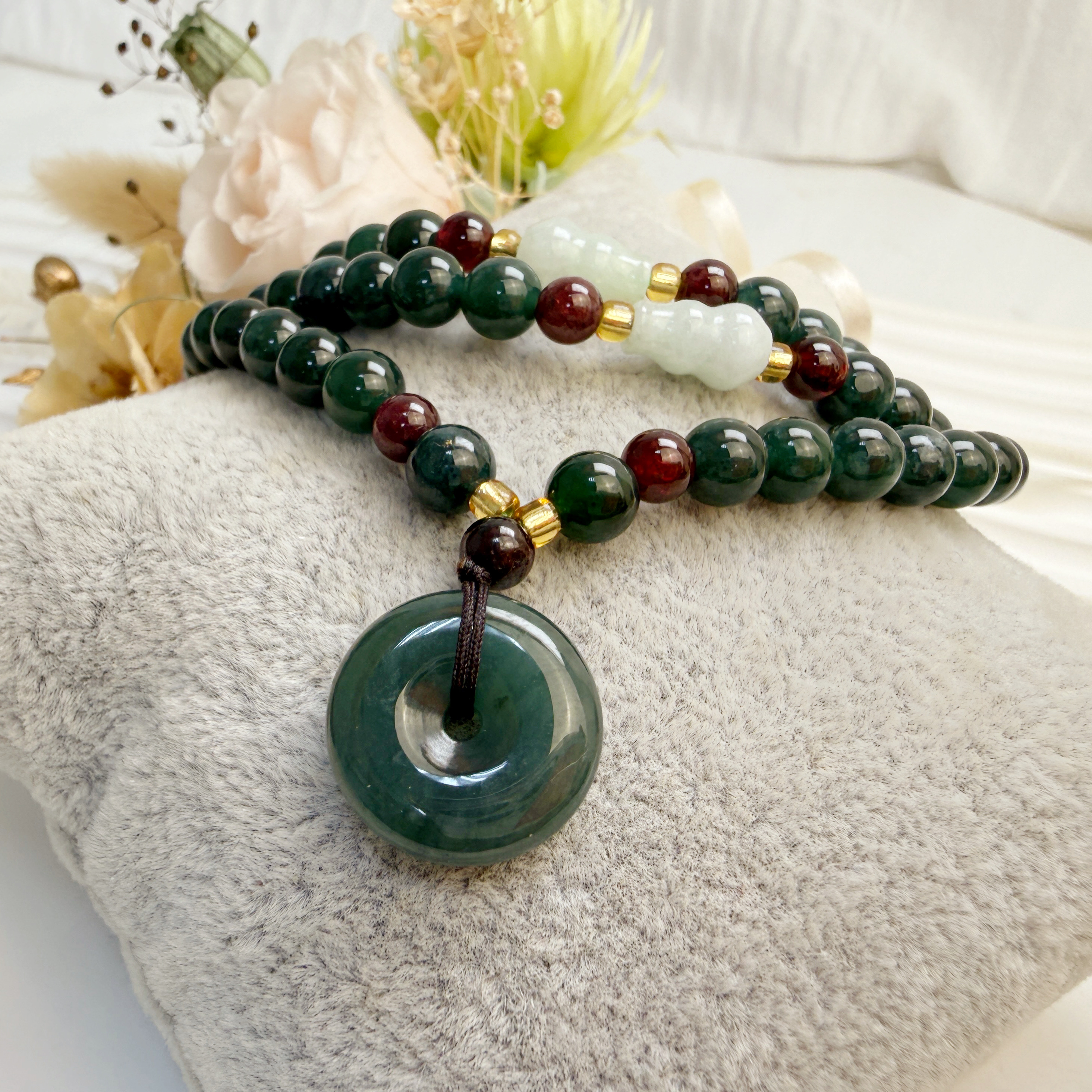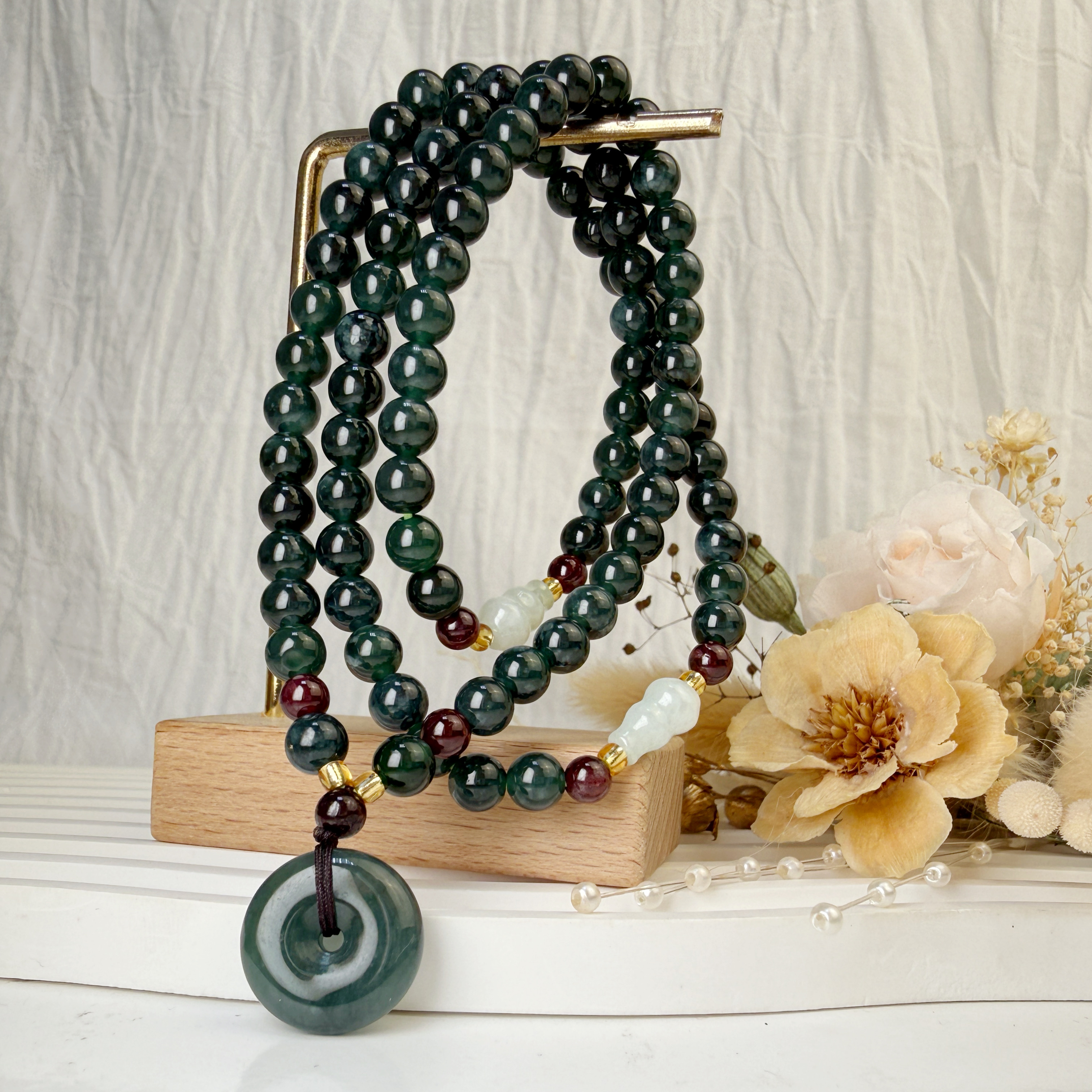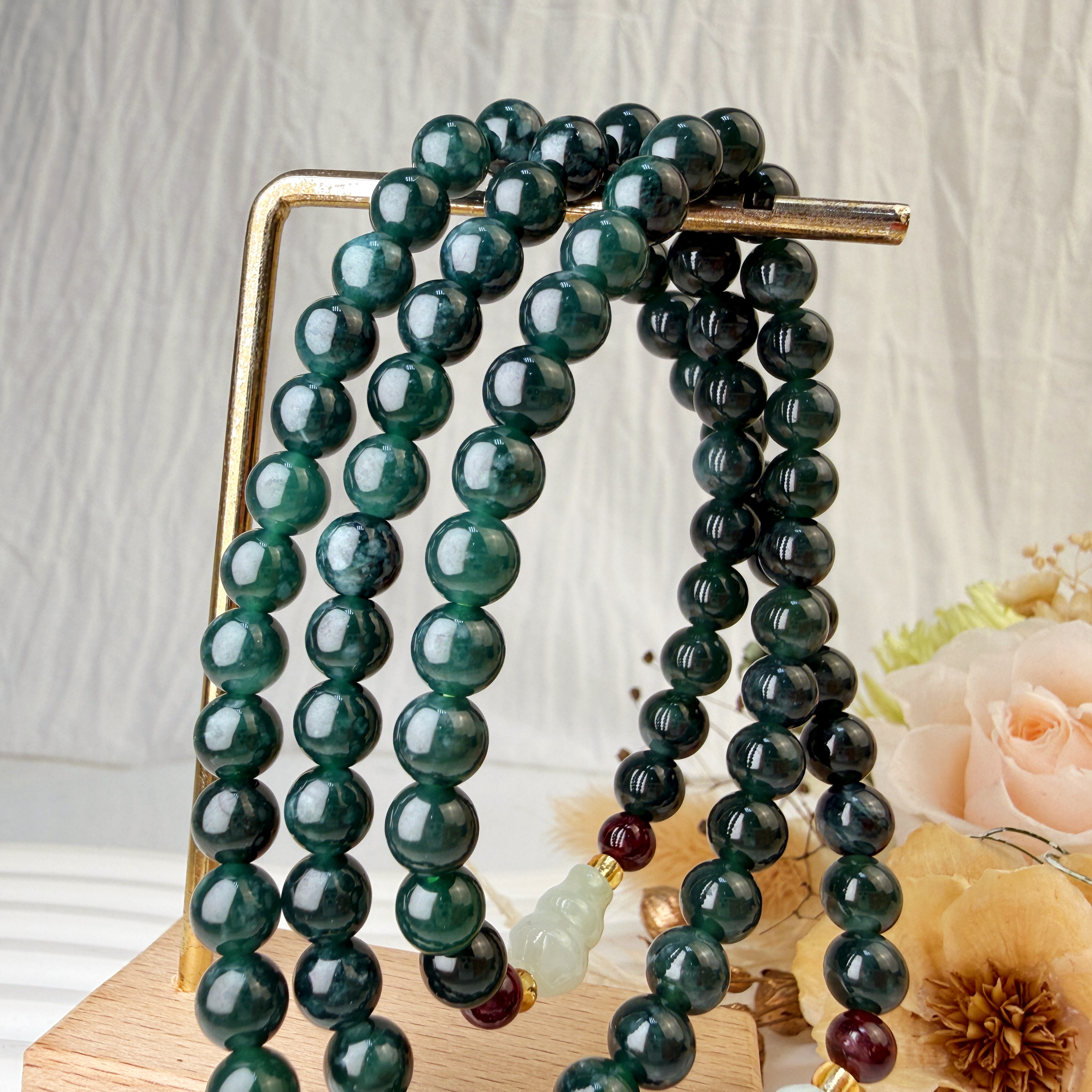 選用質地細膩、色澤沉穩的油青種翡翠,每一顆珠子都蘊含大地孕育的靈性與溫潤光澤。