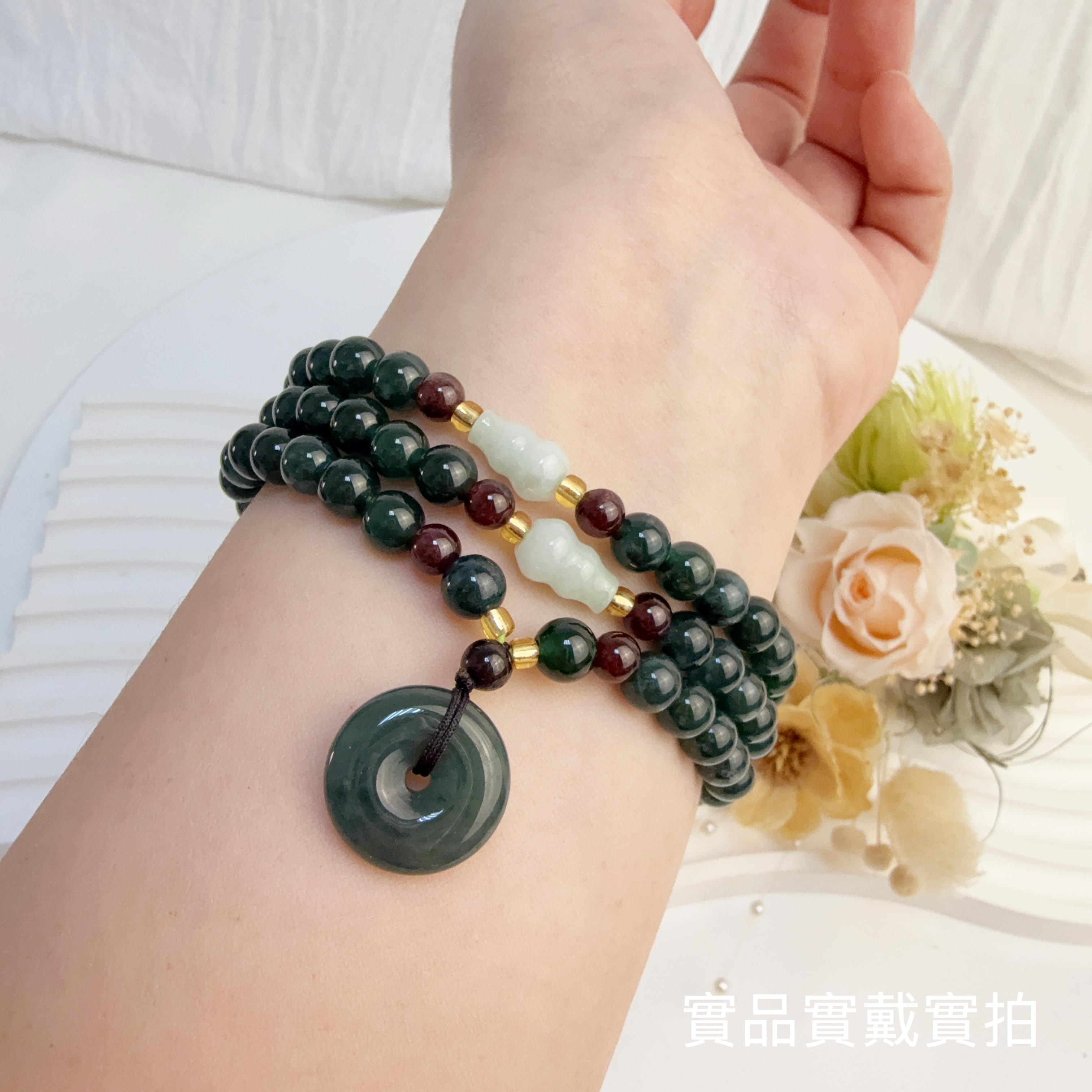 珍品收藏/守護的能量-《油青翡翠三圈平安扣手鍊》