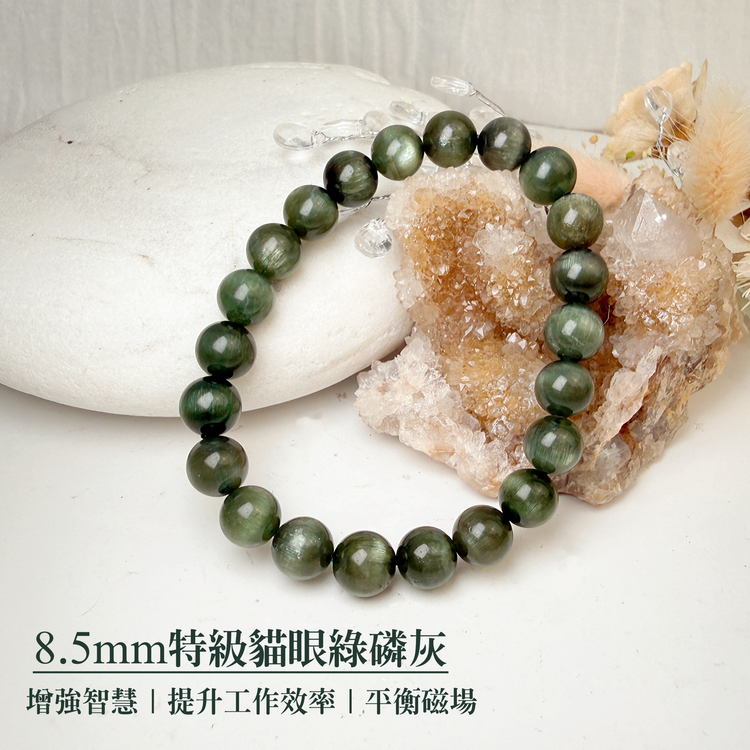 穩定/洞察/事業-《8.5mm特級貓眼綠磷灰石手鍊》