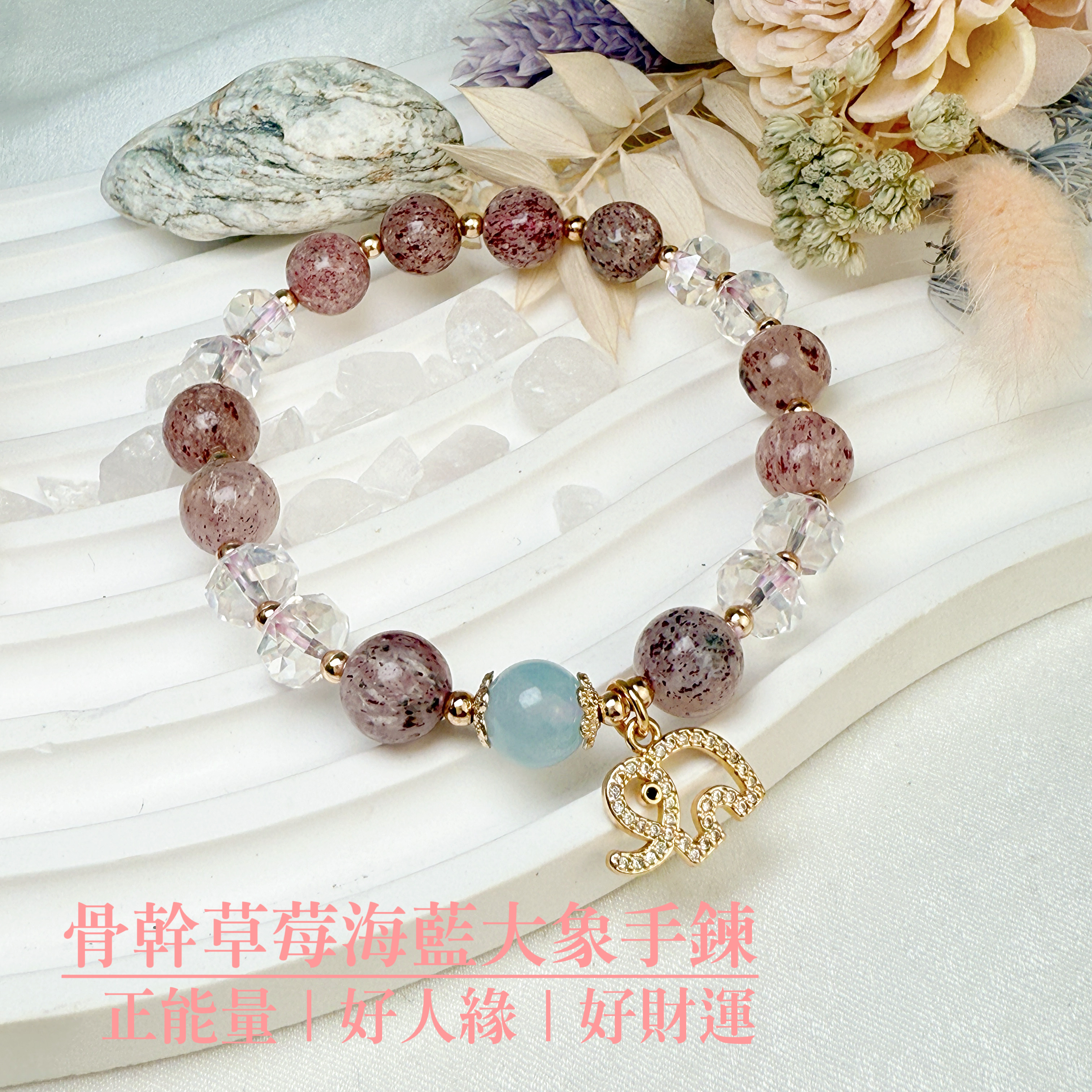 貴人運/正能量-《骨幹草莓海藍大象手鍊》