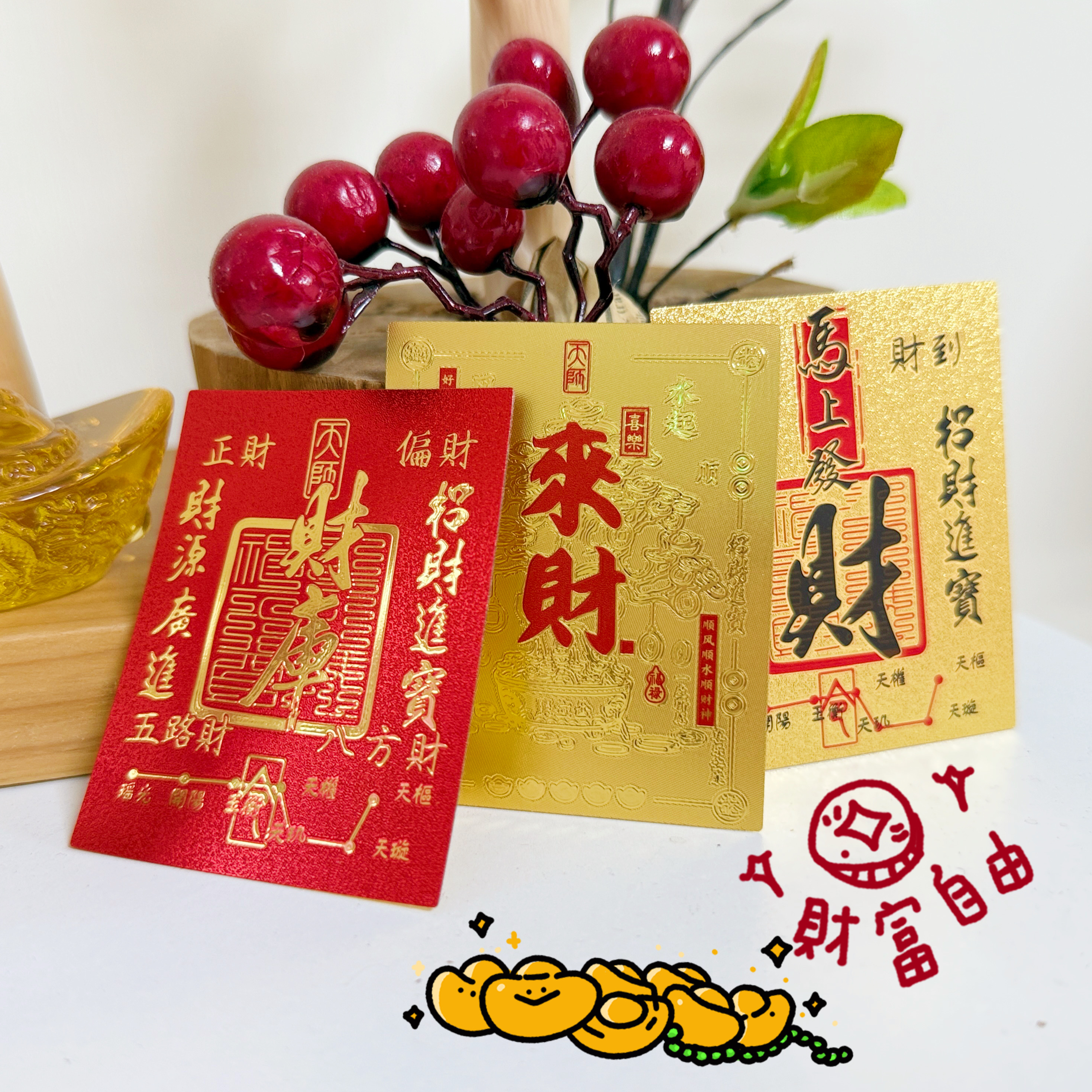 #財庫 #財神 #招財金卡 #財庫貼紙 #金箔手機貼紙 #時來運轉 #五路財神 #八方來財