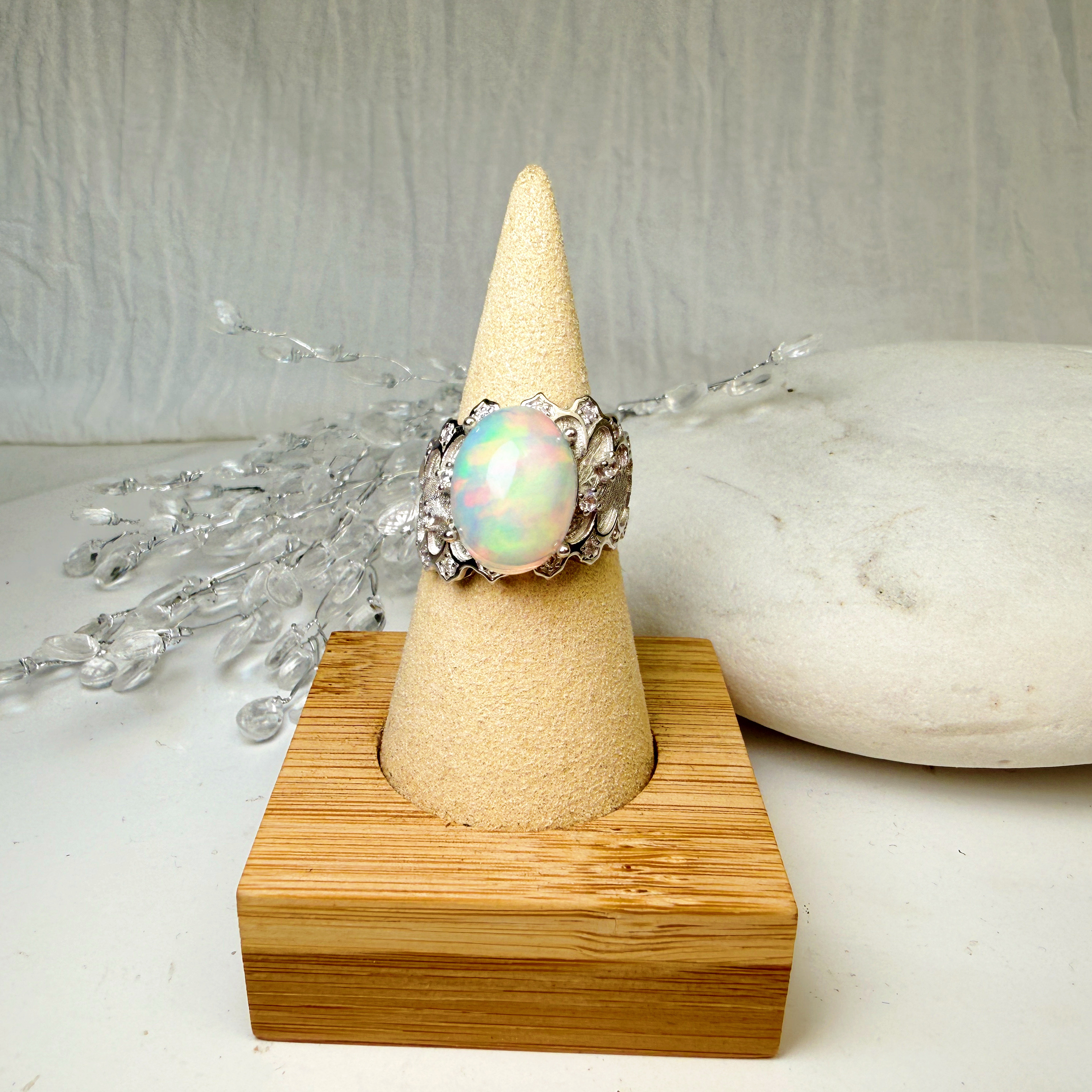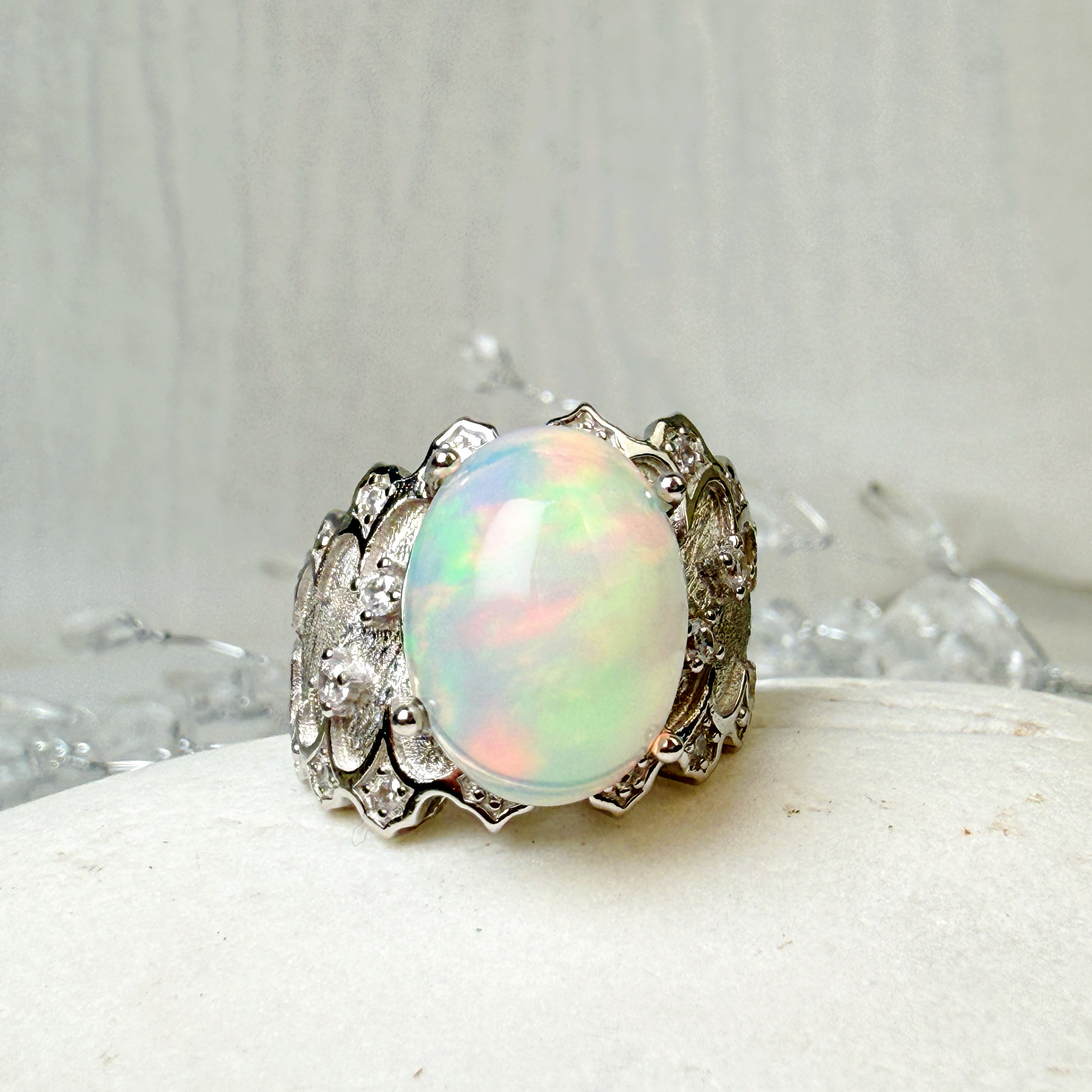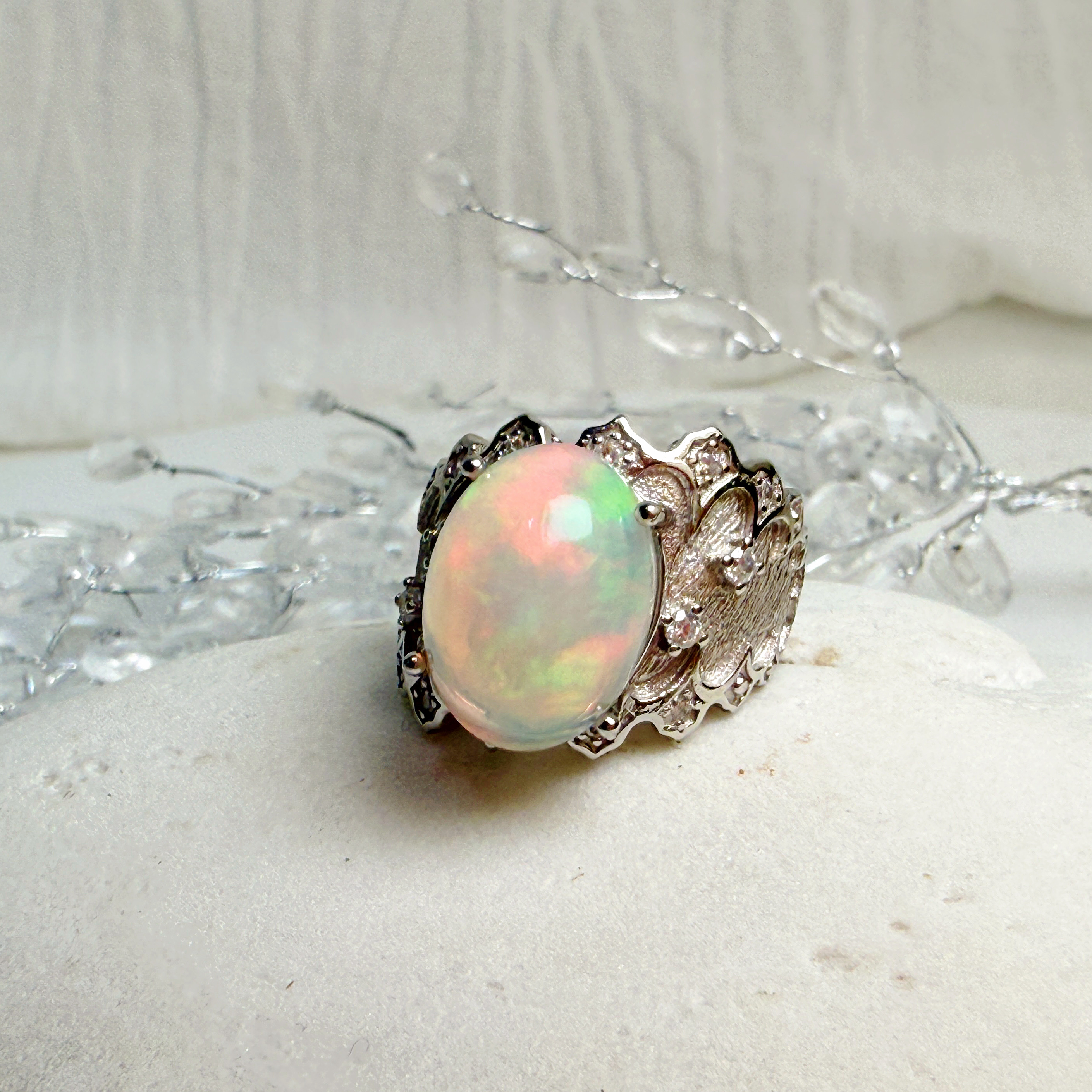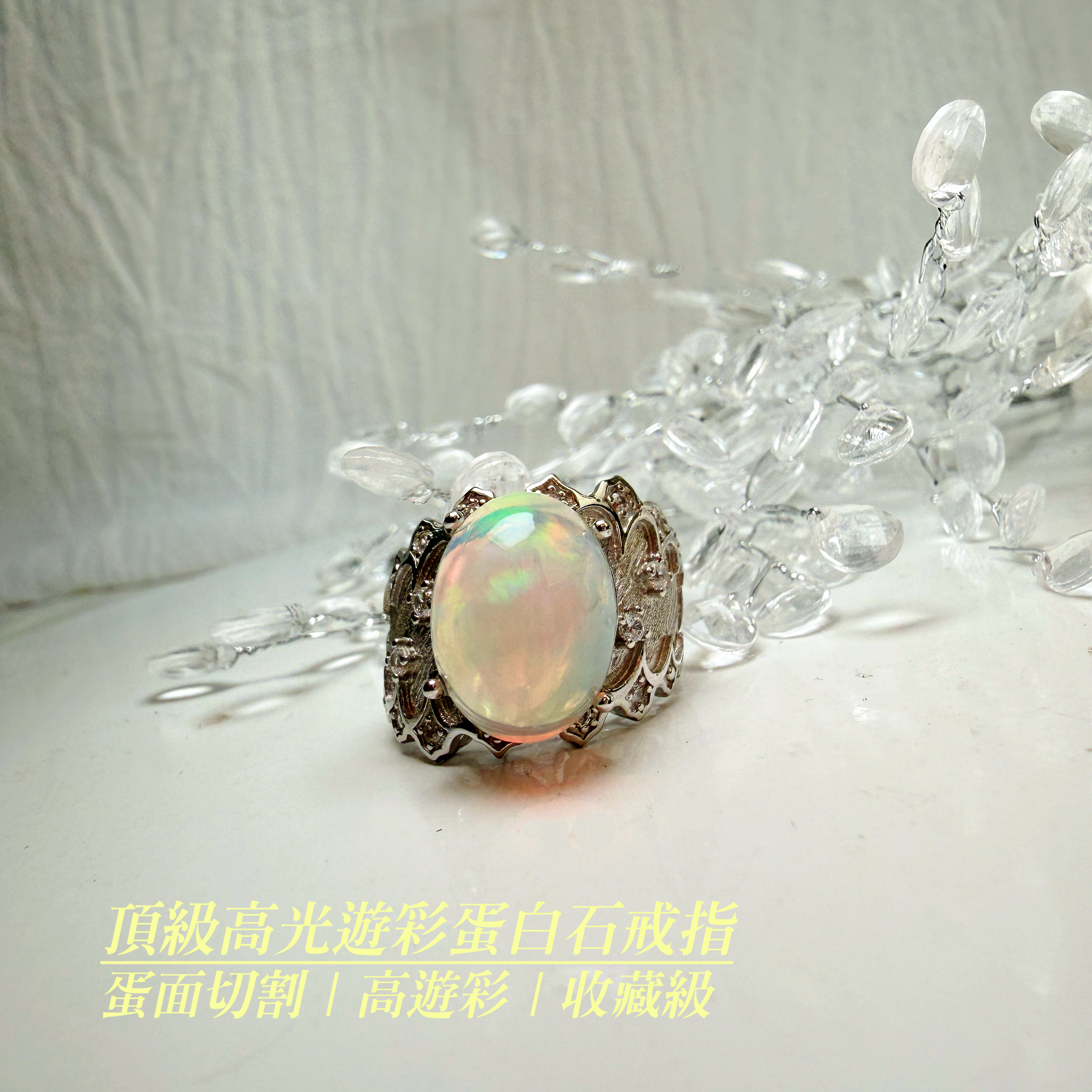 高韻光遊彩/透體料-《頂級高光遊彩蛋白石珠寶戒指》